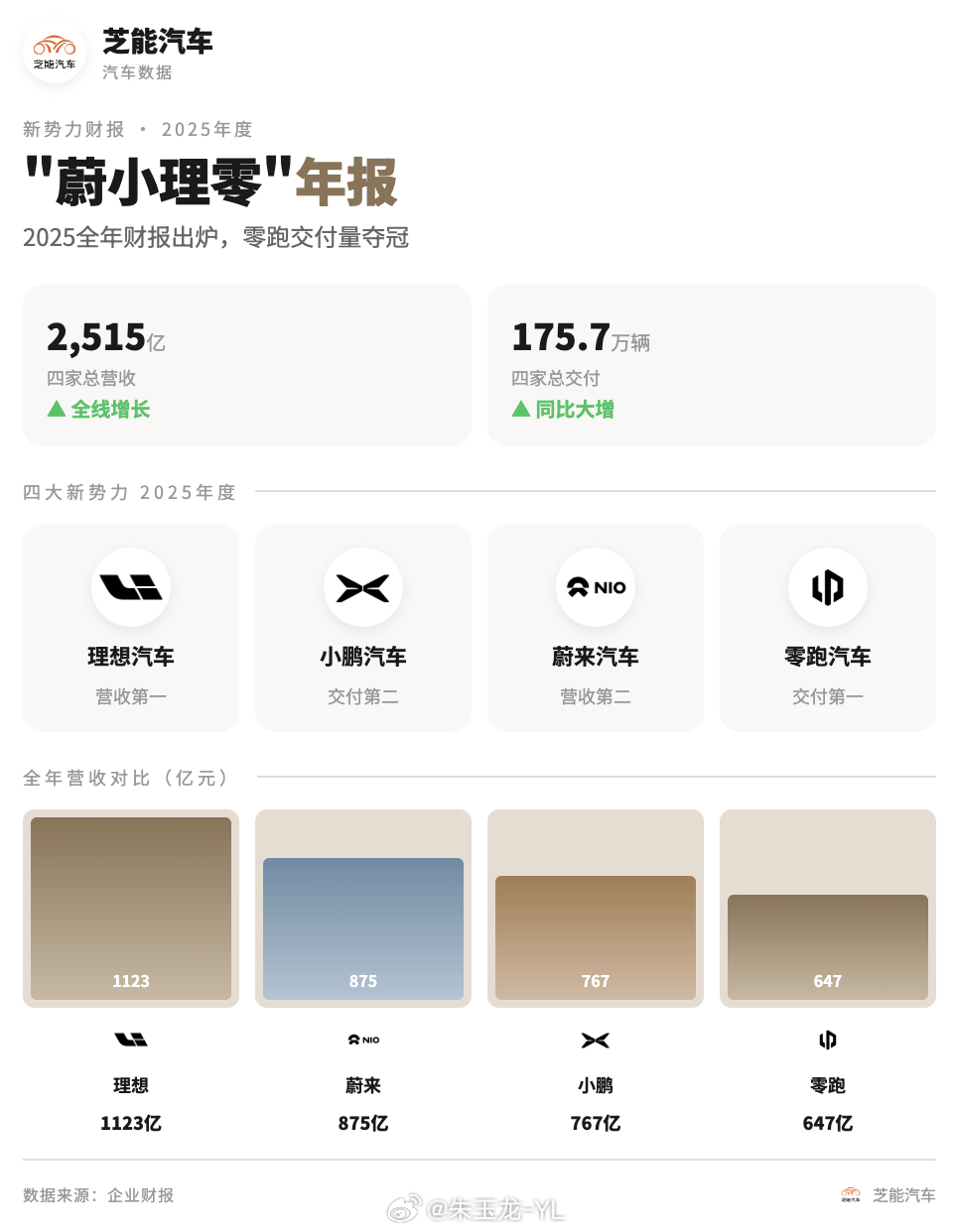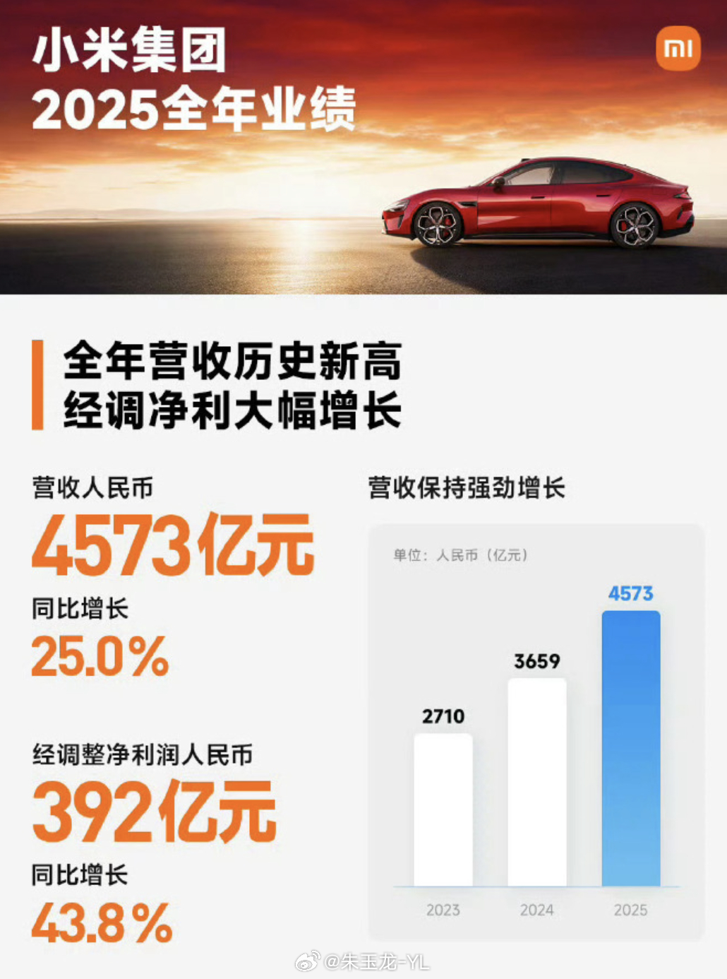 2025年小米汽车的业务收入已经来到了1061亿,排在了理想汽车后面26年新势力