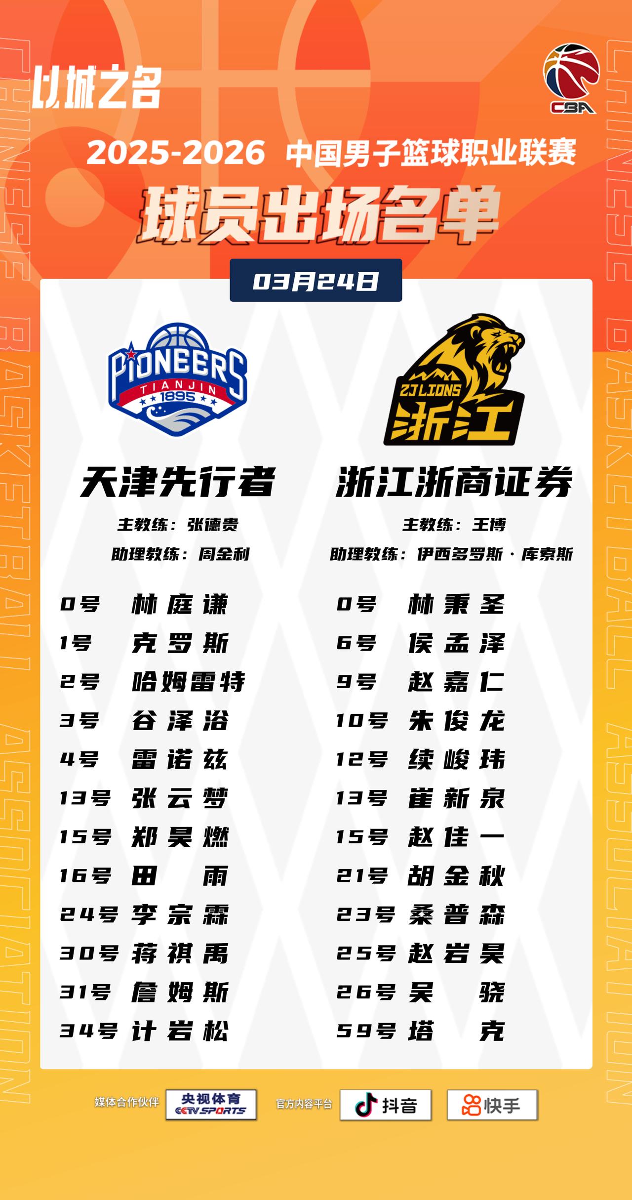 【大名单出炉】2025-2026赛季CBA联赛常规赛第三十轮今晚开打,2场比赛将在19:35同时跳球。敬请期待!以城之名