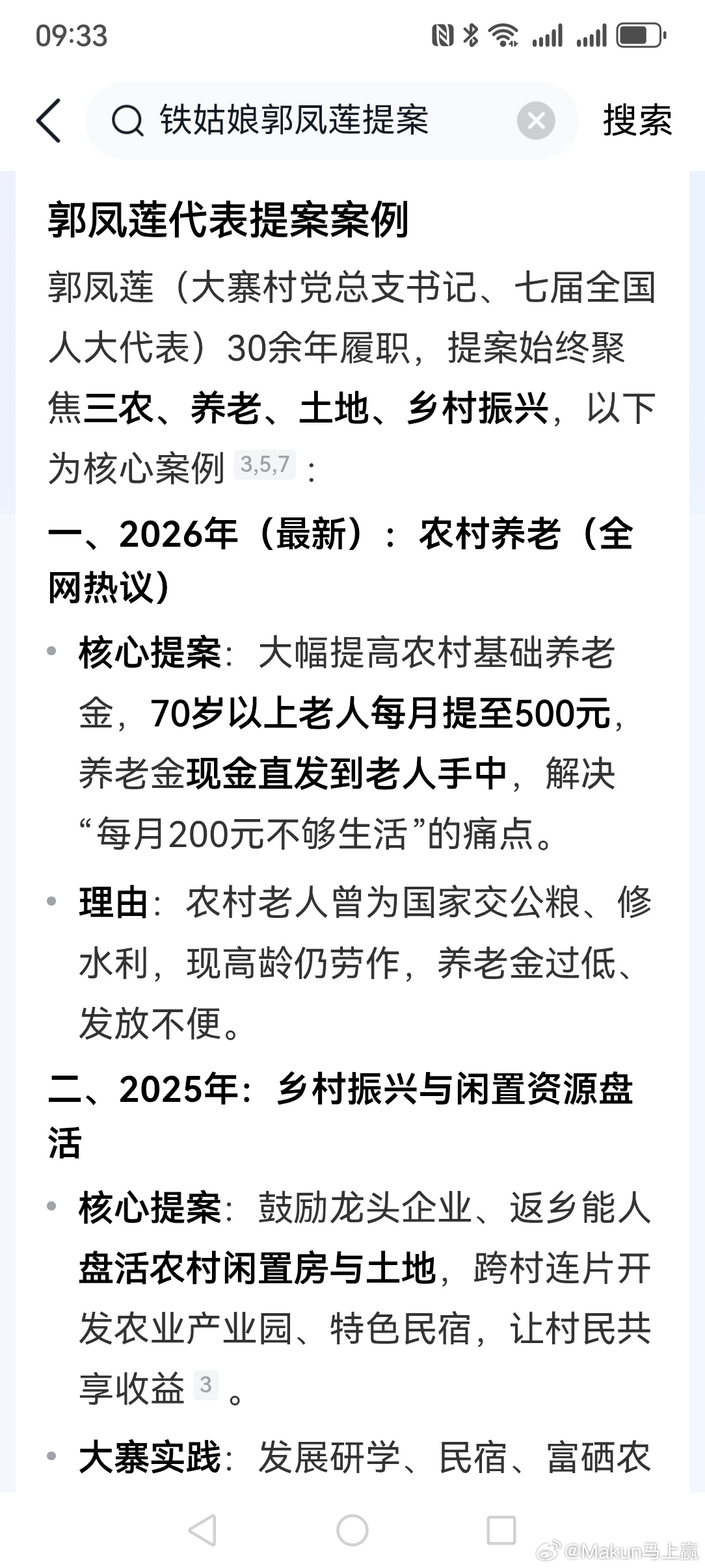 《评郭凤莲代表提案》作为一名曾担任十多年(地方地市级)政协委员的人,我想说,郭凤莲代表的提案实事求是、恰逢其时。让过去那些农村老人,那些曾为国家基层建设吃苦出力的人,都能享受到国家发展改革的红利。想想有那么多可视同缴费的人,这么做一点都不为过。能切实提出社会现实需求,这也是委员代表履行职责的体现,总比那些唯唯诺诺、见风使舵的人强多了。不管这个提案最终能否落实,我们都应赞扬郭凤莲代表。