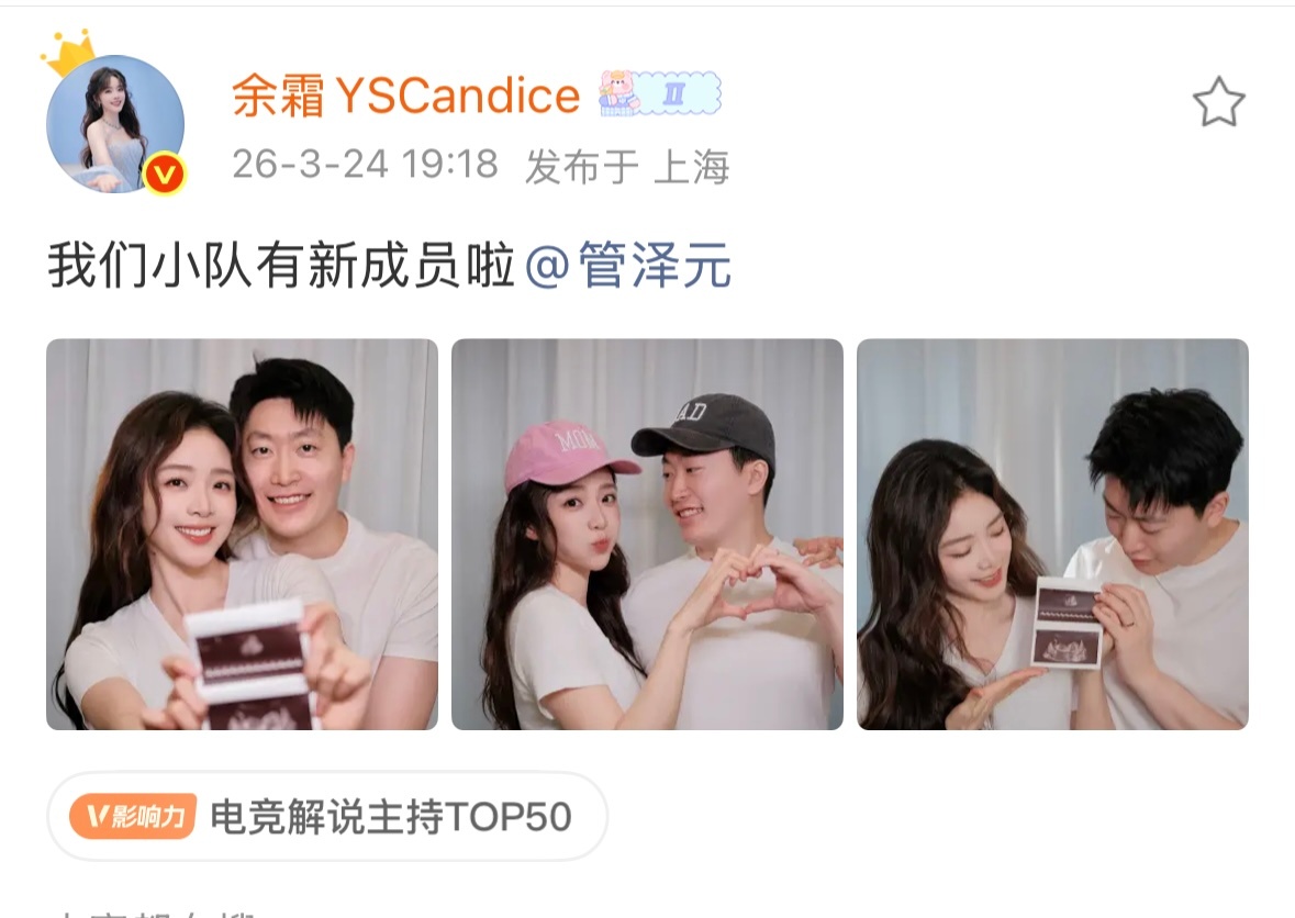 管泽元余霜官宣怀孕管泽元升级当爸 恭喜恭喜🎉 管泽元老师升级电竞奶爸新称号了,