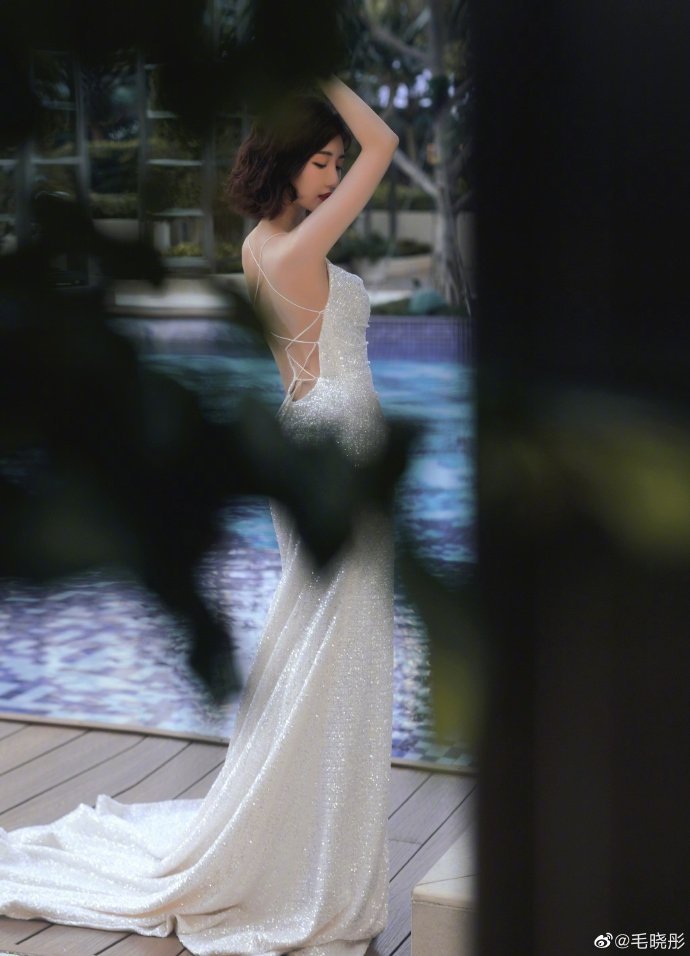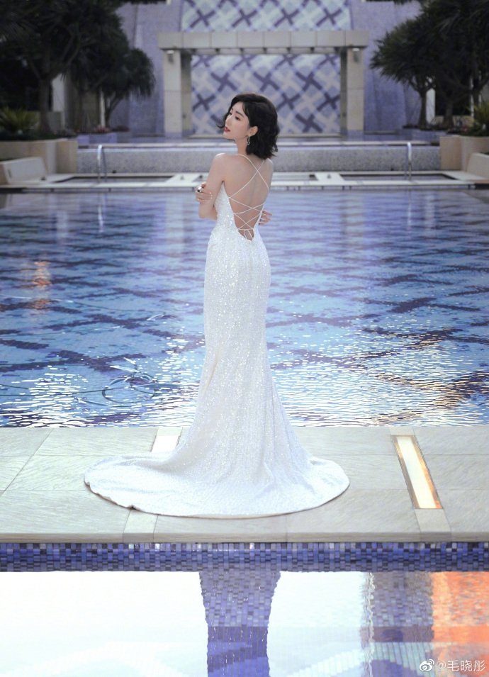 毛晓彤波浪卷发配红唇港味十足 露背秀优越线条超性感明星