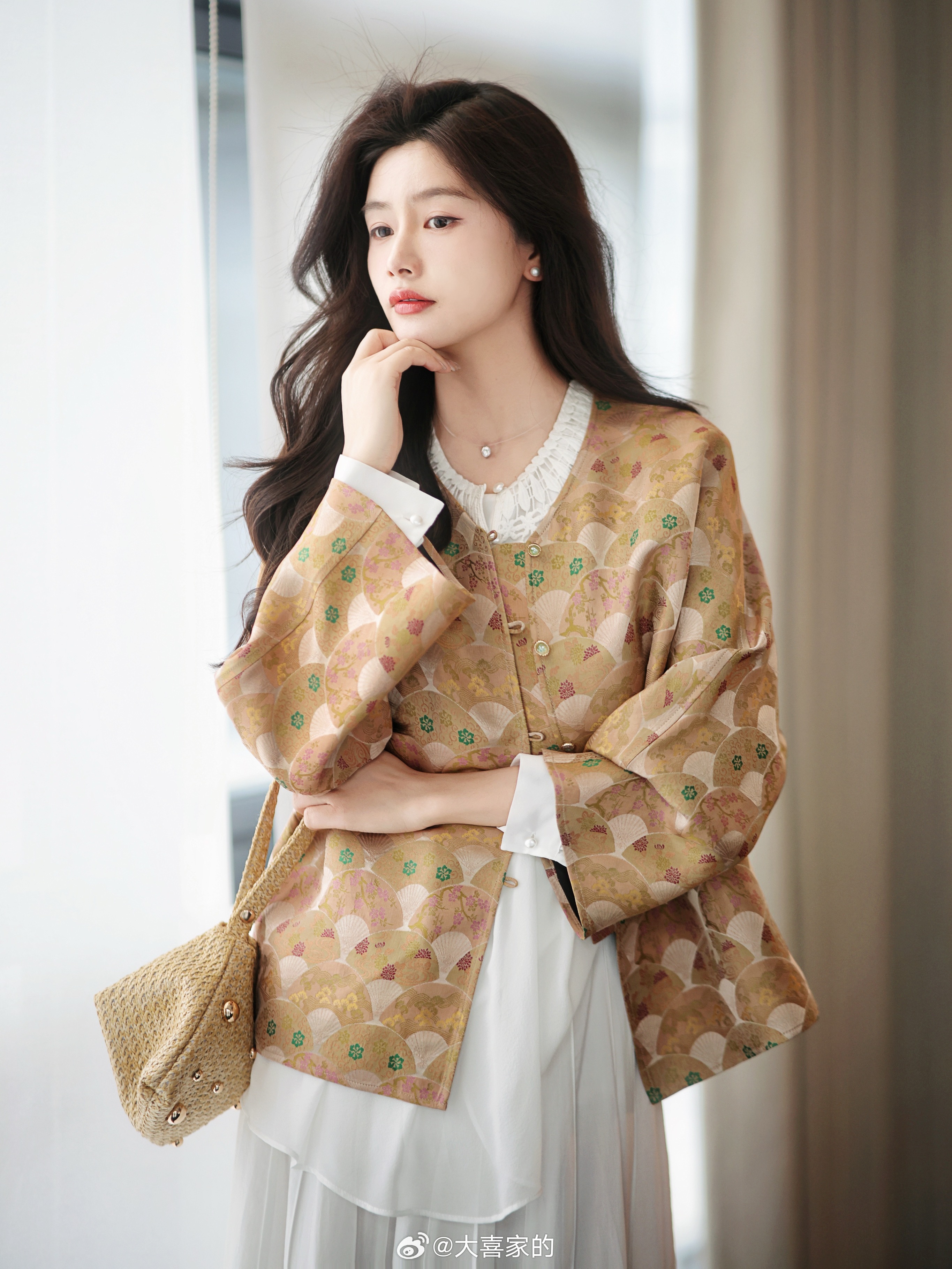 每次都会被国风的细节震惊到!38姆米真丝人丝 香云纱/题折扇提花不同折扇上有各式花卉植物 姐妹们一定要细细看!很牛