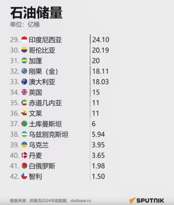 全球石油产量前40名国家公布!
