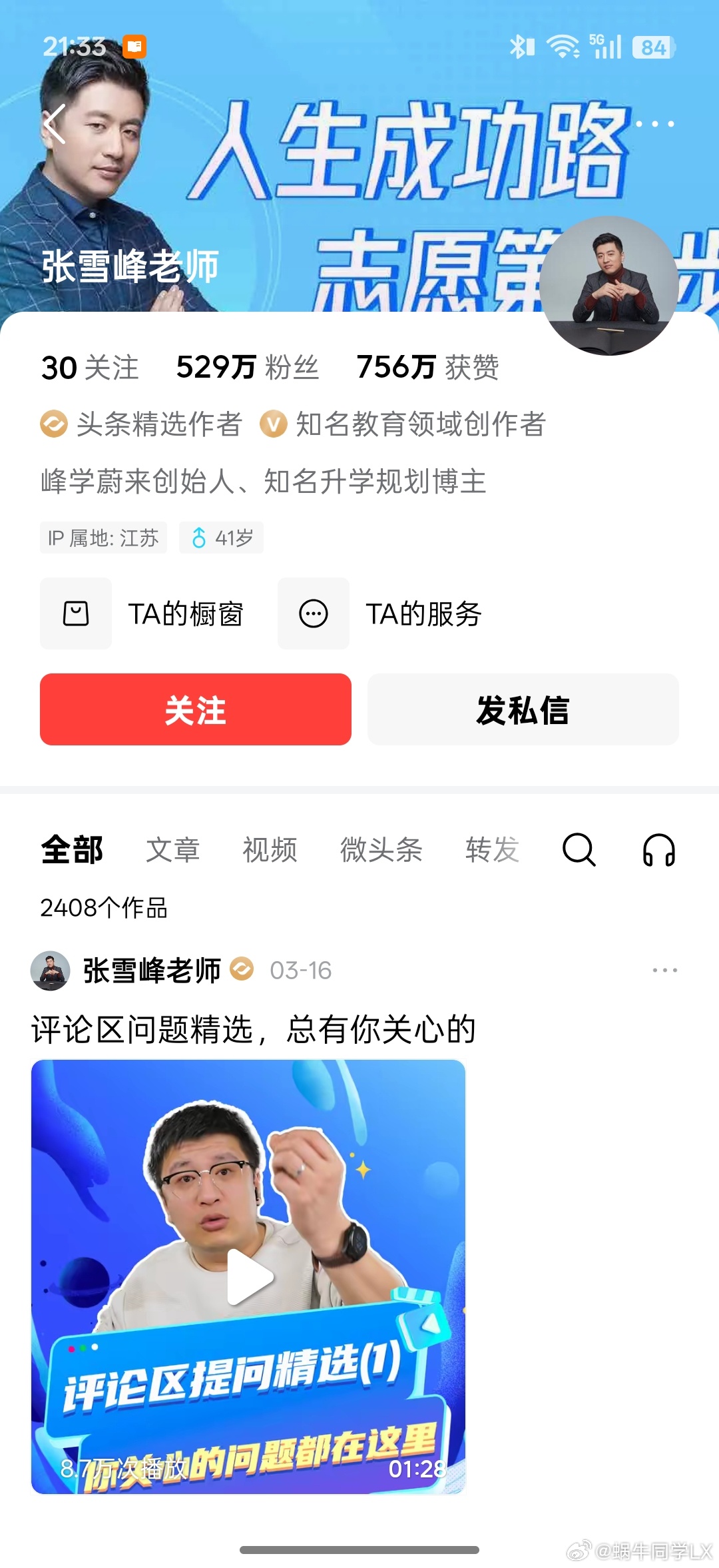 张雪峰前四个平台头像背景都灰色了,最后一个平台还没变化,希望张老师能转危为安,最后是一场虚惊。大家不要以为脑力劳动对身体消耗比体力劳动小,平时还是要注意劳逸结合,尤其是人到中年。