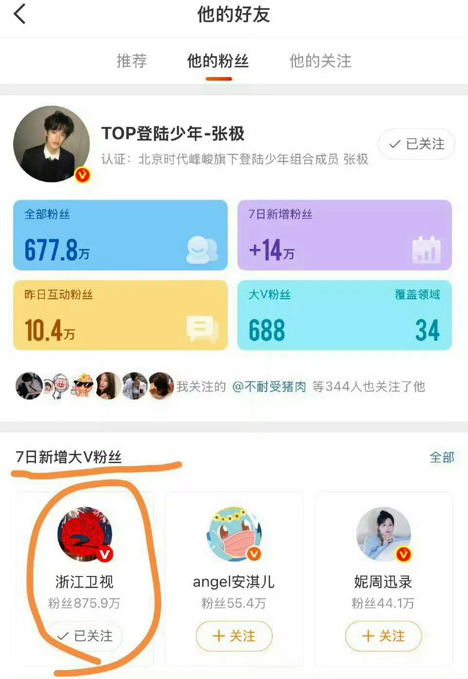 TOP或参加跑男 张极粉丝质疑个资疑似变团资?浙江卫视在今年新年第一天就关注了张极,且团内只关注了张极一个人