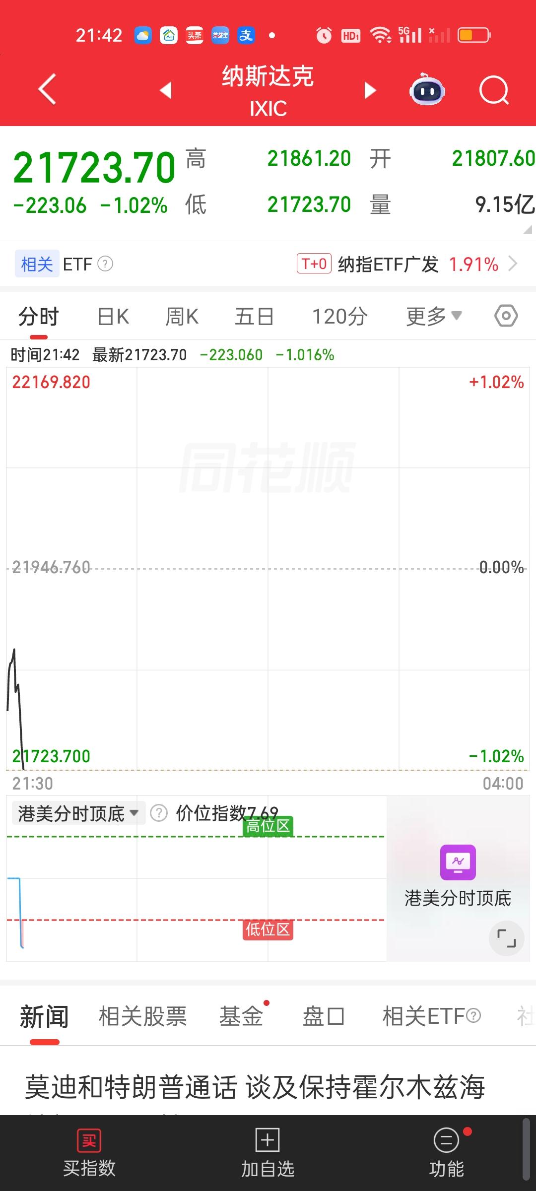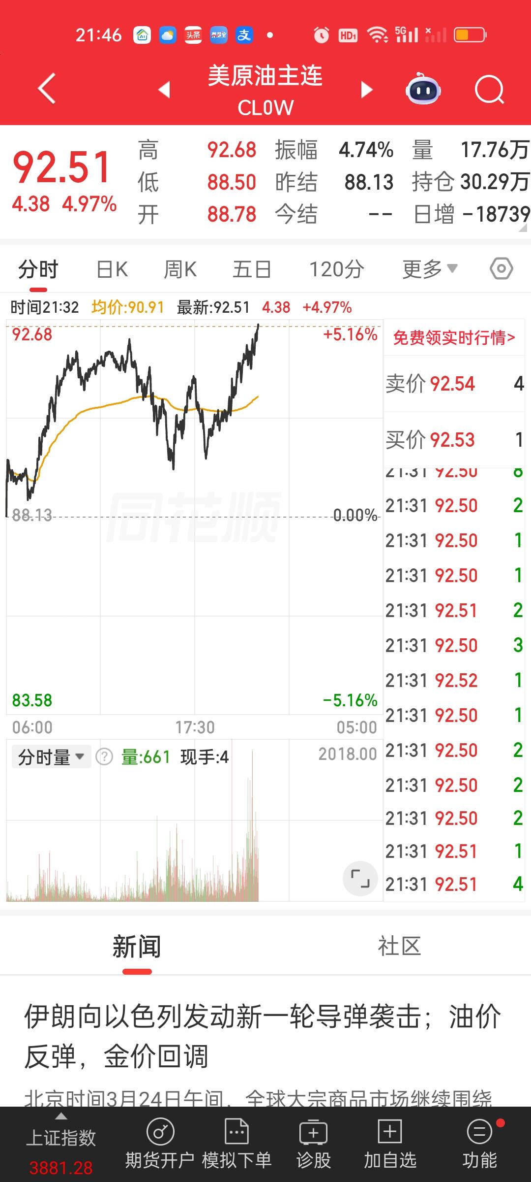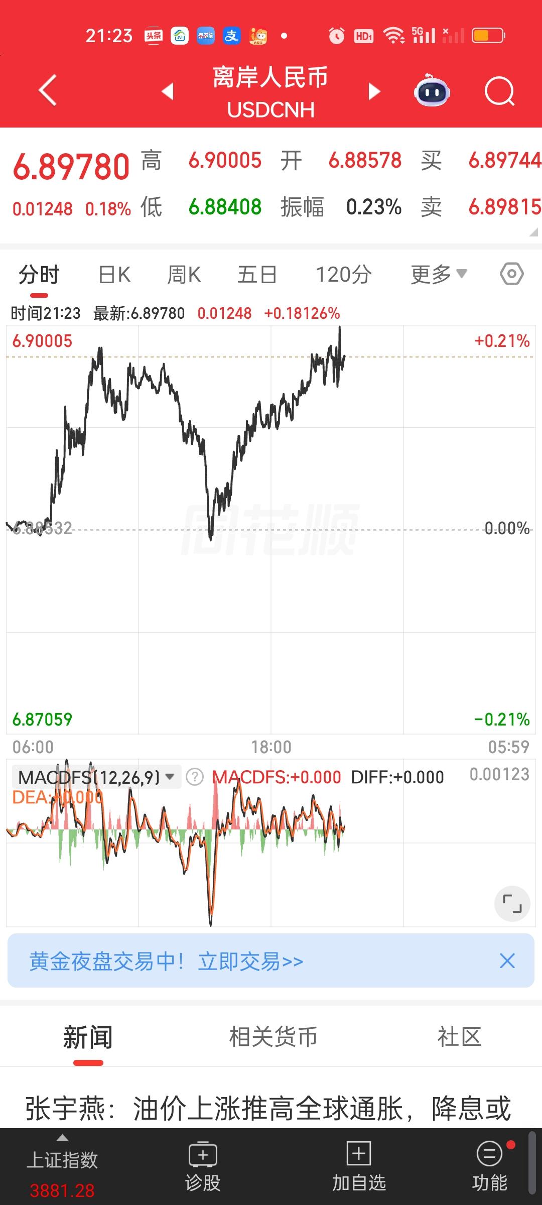 美股开盘还是下跌的状态。外围数据也并不好,港股恒指和恒科期货,富时A50期指,日经,以及离岸人民币汇率,还有石油还在上涨,还有欧洲主流股市目前情况都不好。目前很难说美股晚上还会不会暴力下杀。如果爆杀,明天我们开盘肯定会受到波及,港股受到的影响会更大。