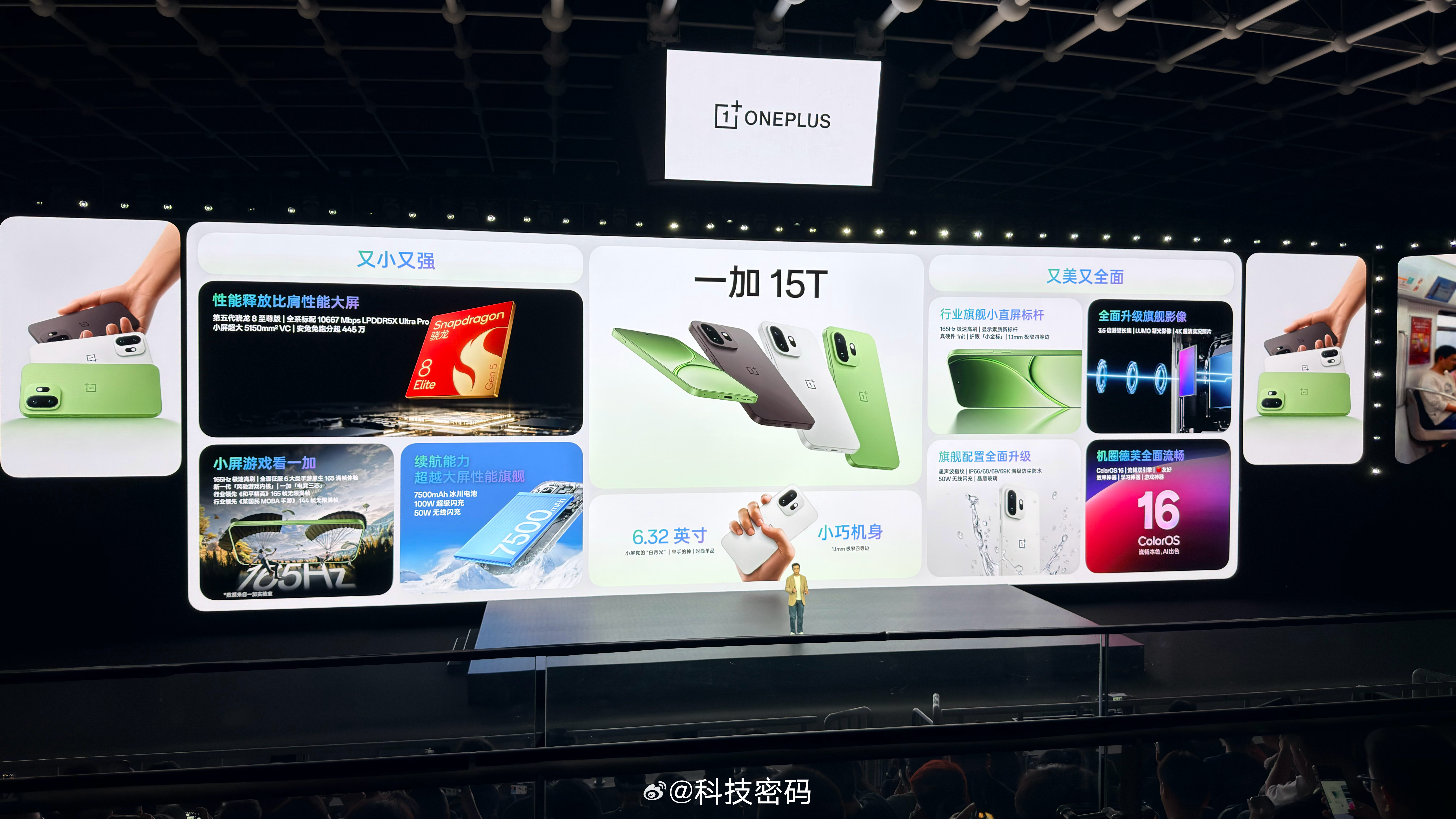 速看!一加15T 正式发布又小又强又美又全面的小屏旗舰!新一代「小屏大魔王」,性能续航超越大屏,旗舰体验完胜小屏。搭载第五代骁龙 8 至尊版,行业独家「电竞三芯」, 7500mAh 冰川电池, 165 超高帧游戏生态,LUMO 凝光影像系统 + 3.5 倍潜望长焦, IP66/68/69/69K 满级防水,「小金标」护眼认证,全新ColorOS16 等功能于一身,一部即全部,现已震撼发布!