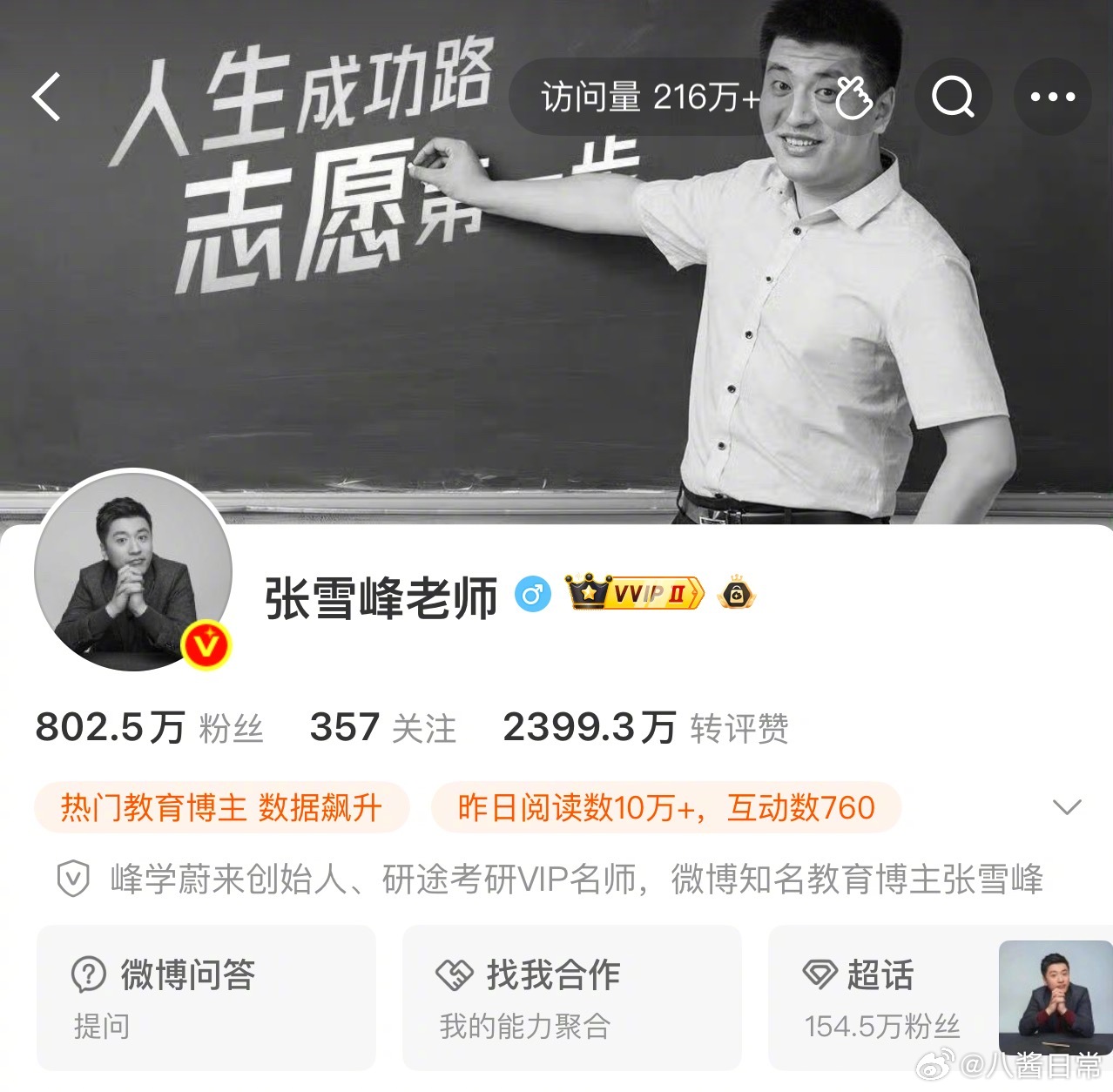张雪峰微博、小红薯、抖、B站头像都变成黑白了
