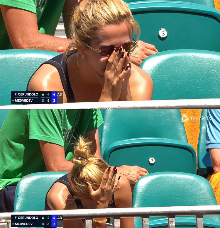 梅嫂:孩她爹,你干嘛呢,这是中邪了吗?一上来就吞蛋、各种离谱的失误,没眼看,真的没眼看😤 梅德韦杰夫:老婆呀,我也不想吞蛋,不想失误呀,可这个球场真的好邪门呢!!不仅有我一个是这样子的,你看我那普通的同事西西帕斯,不光吃蛋还吃了油条呢… 哈哈,该说不说,迈阿密真的是好冷,你看男单16强中,TOP10存活的只有辛纳、兹维列夫和弗里茨[我想静静]….迈阿密1000塞 梅德韦杰夫 西西帕斯
