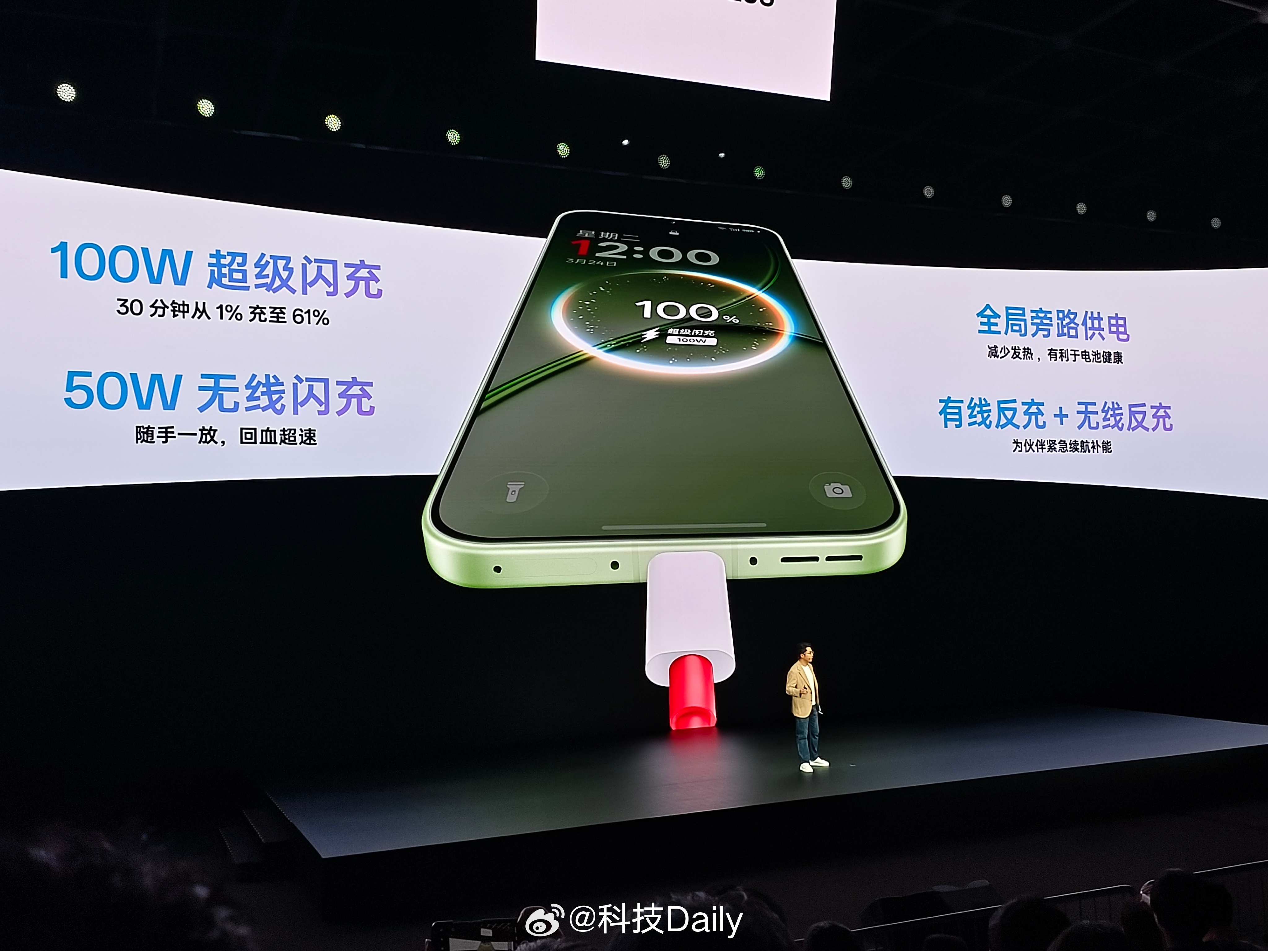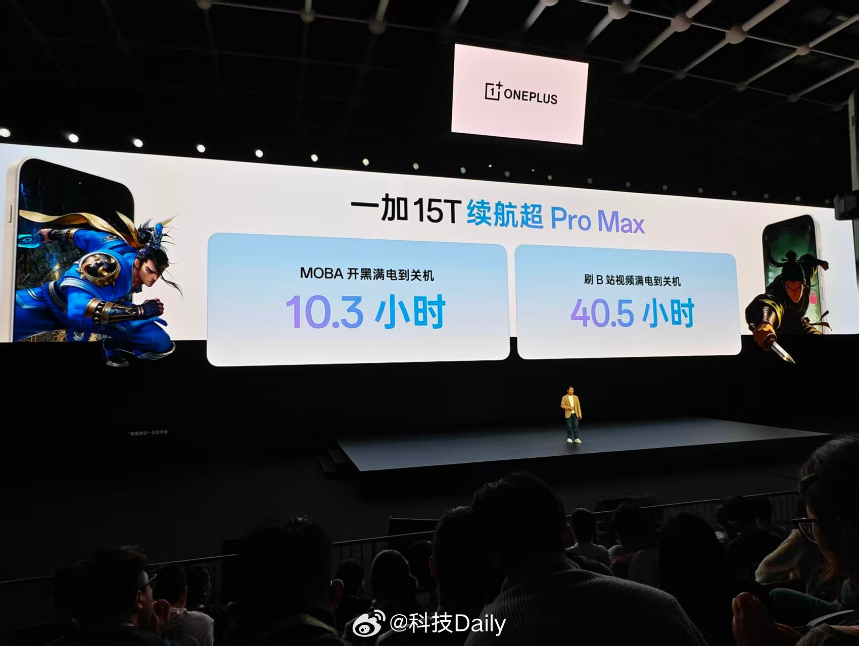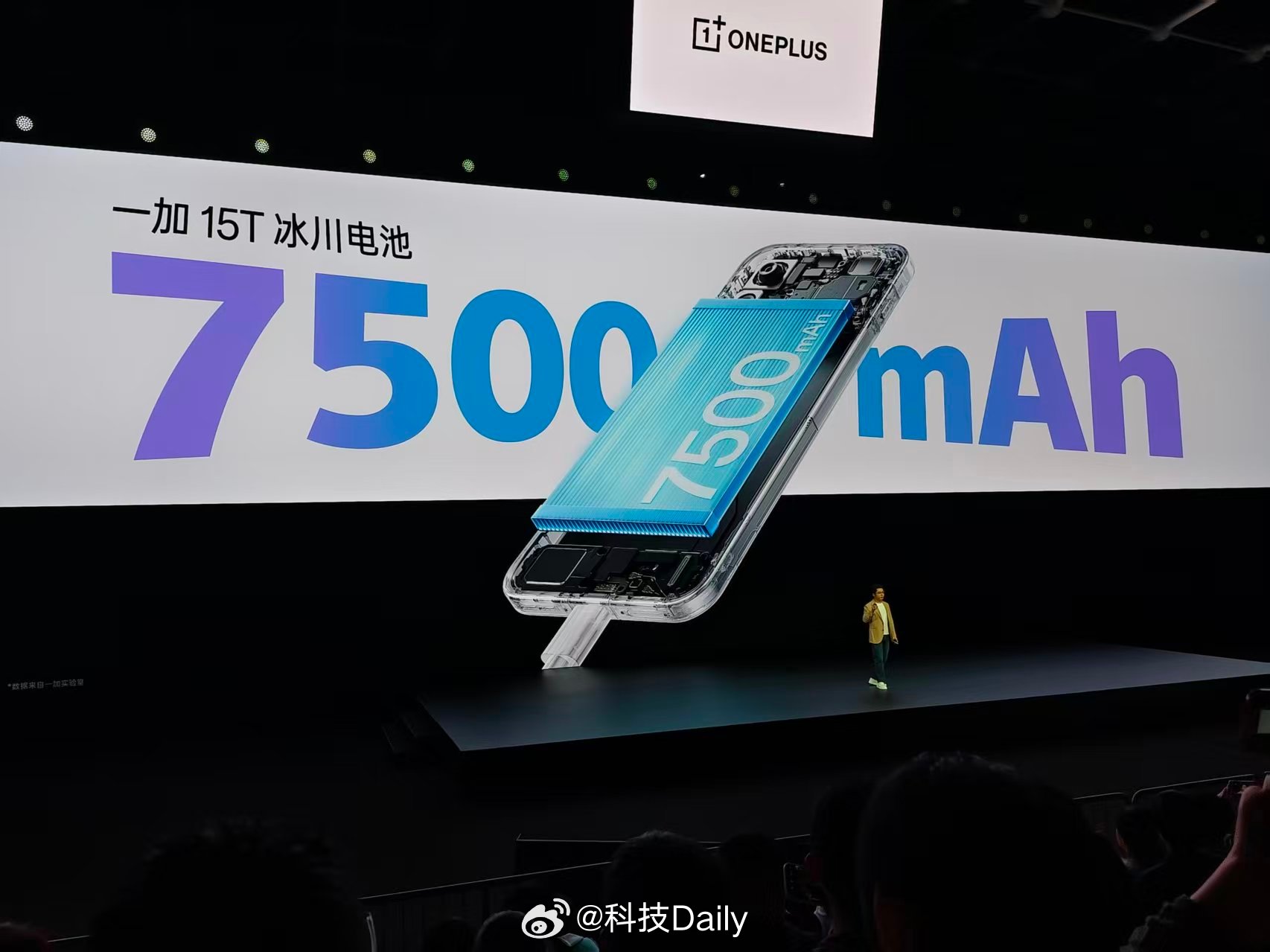 一加 15T 搭载 7500mAh 超大容量冰川电池;支持 100W 超级闪充