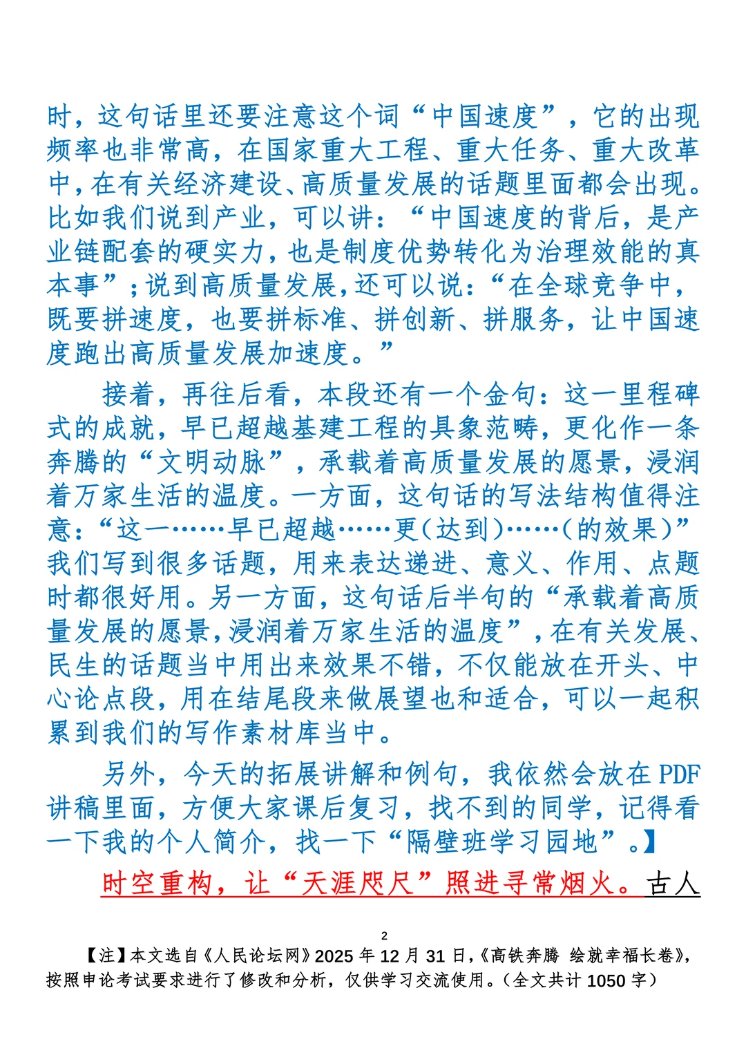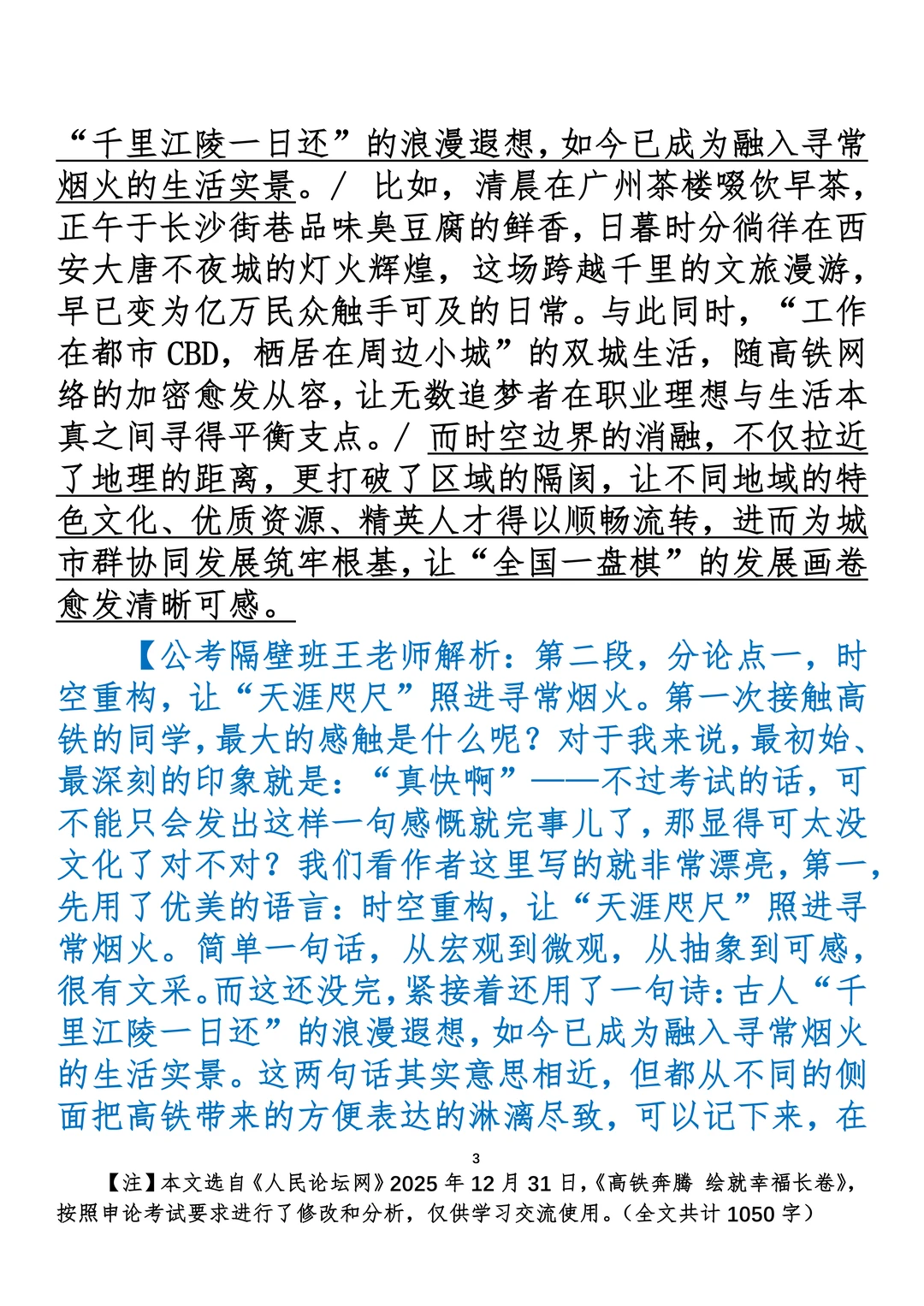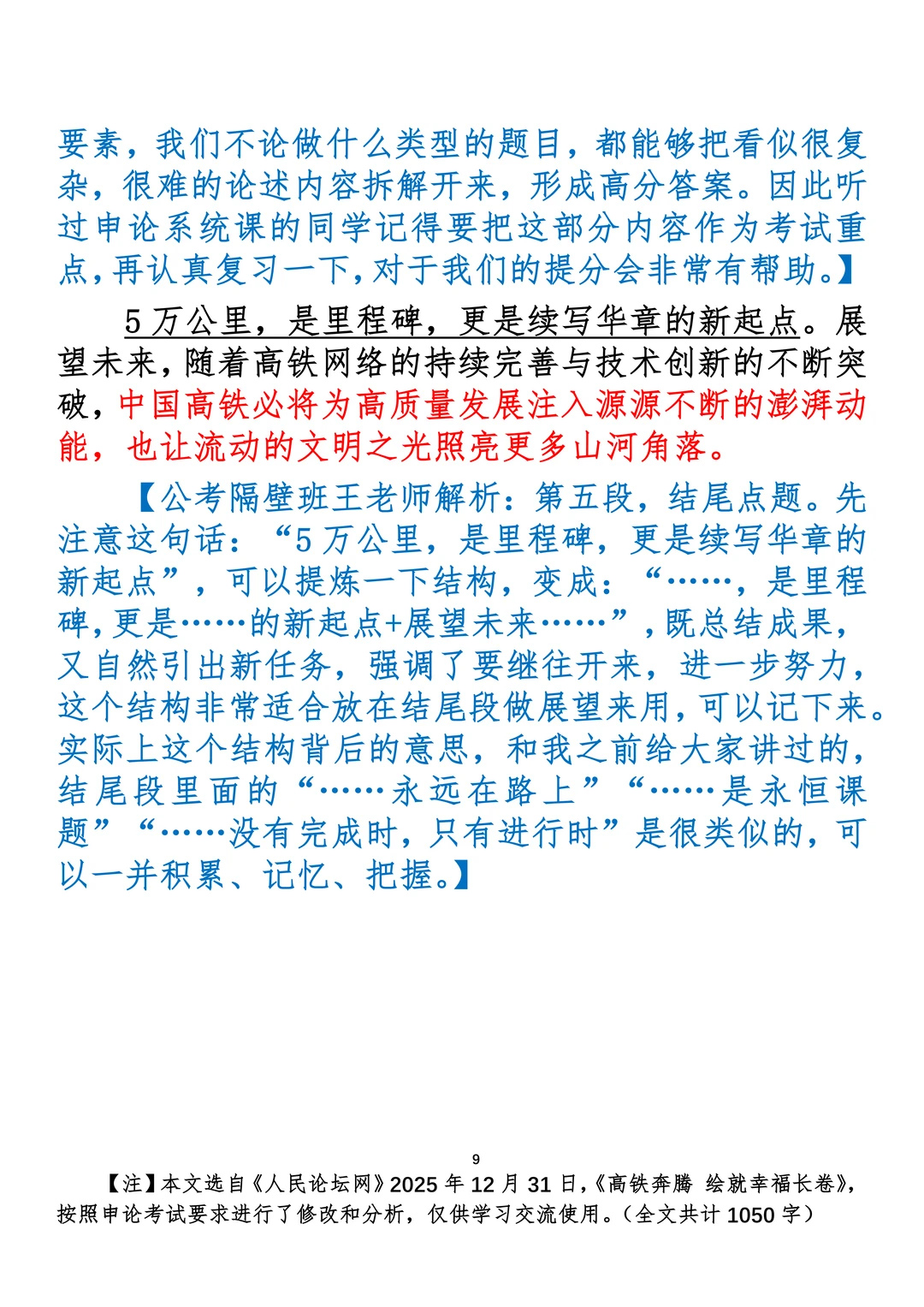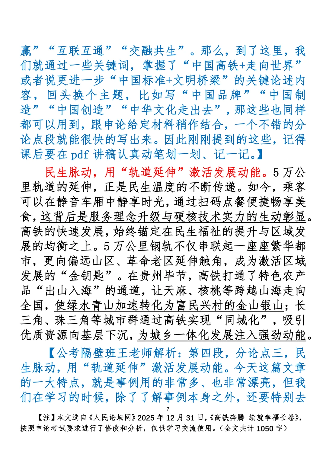 如何抄写:每日抄写文章发在“公考隔壁班王老师”账号,红色字是重点句和结构句,黑色字是正文,蓝色字是解析,大家抄写时不必抄蓝色字。建议先通读全文,做到心中有数再开始抄写,效果会更好。 关于文章:抄写文章来源于人民日报,但每篇文章我都根据申论考试要求进行了修改:一是重写或修改开头、结尾;二是统一段首句句式结构;三是调整段落字数,使文章结构更均衡;四是简化复杂长难句,使之更具可模仿性。每篇文章无论修改多少,都是基于申论考试要求,毫无对人民日报文章品评之意。(此处致敬人民日报)