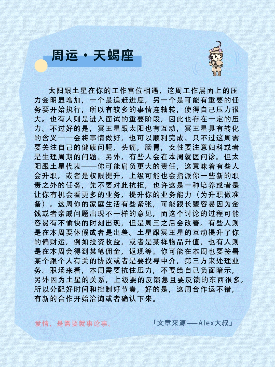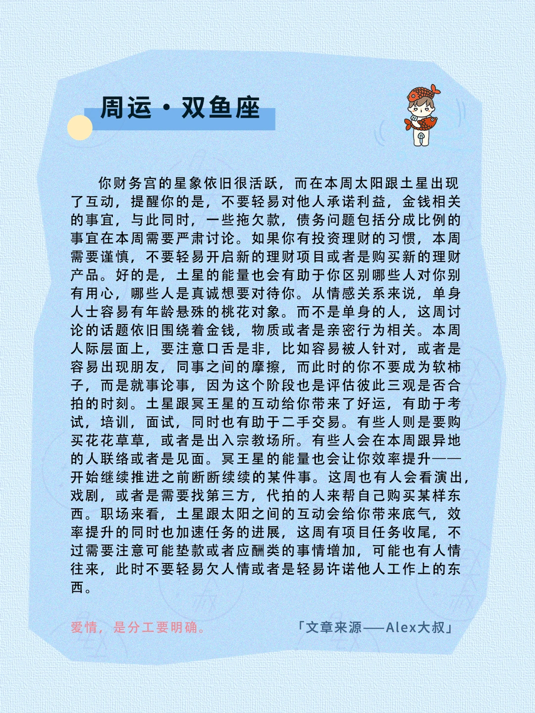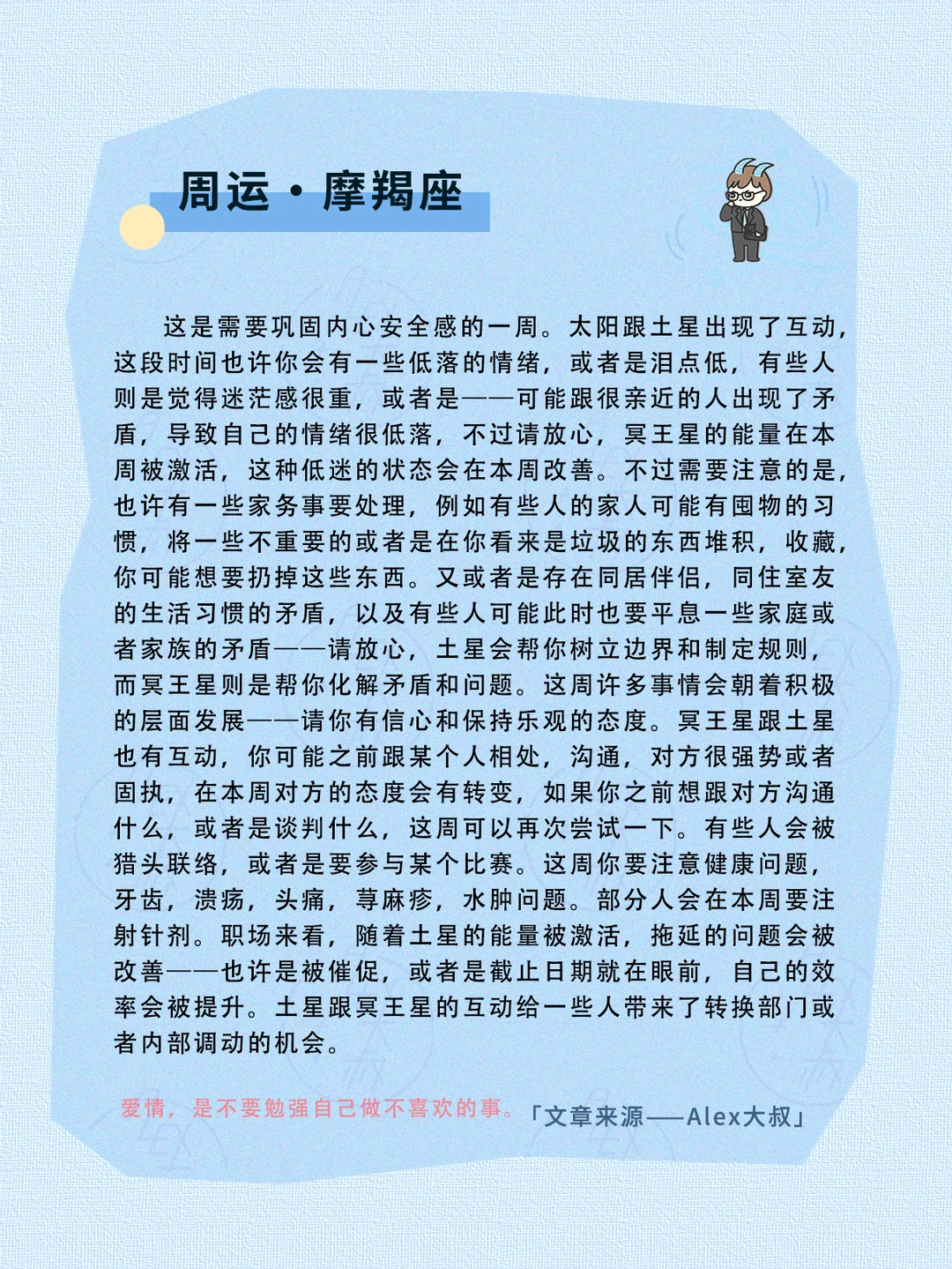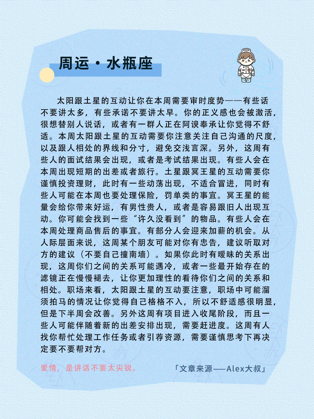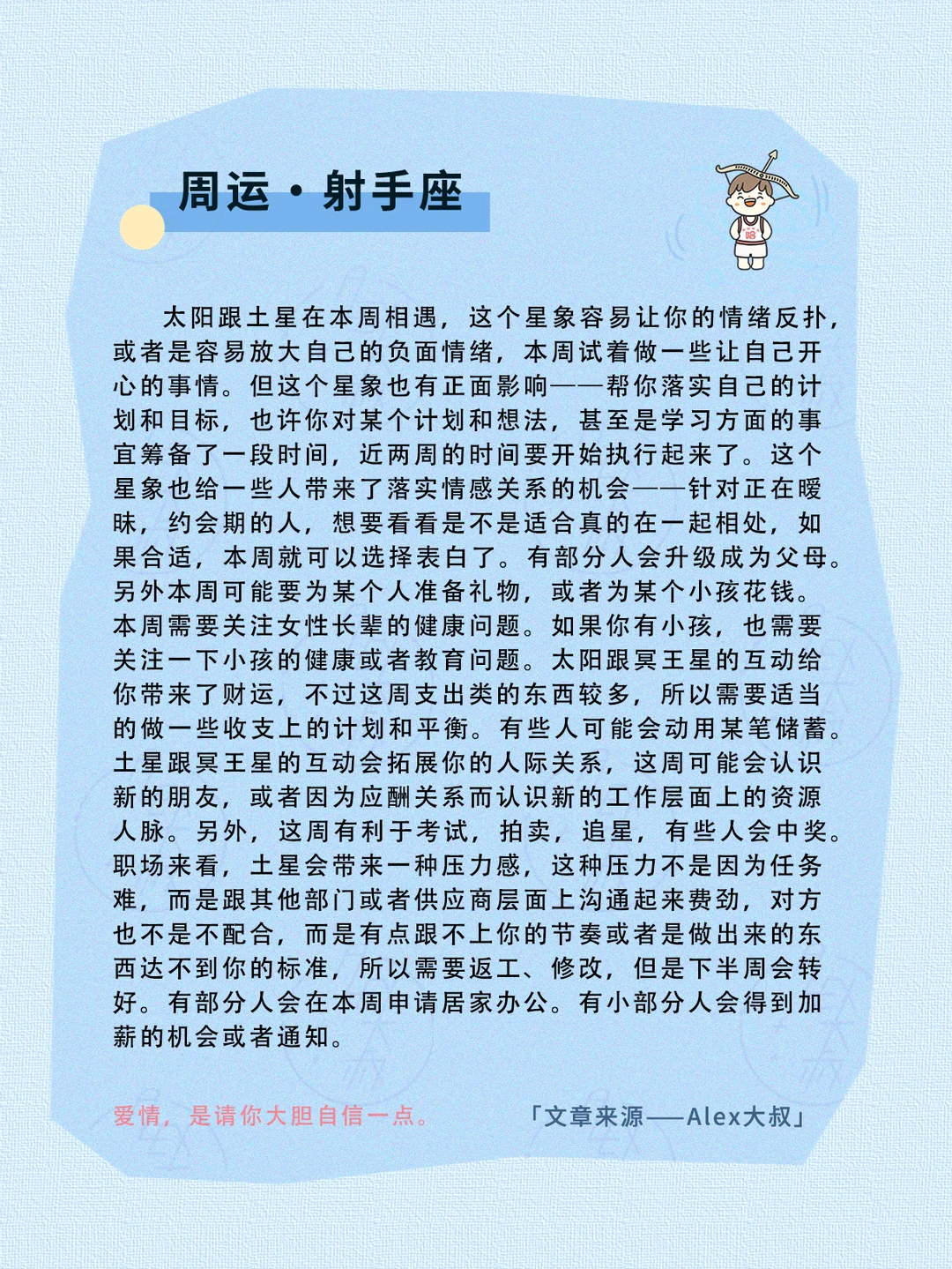 太阳跟冥王星也会出现和谐的互动,土星跟冥王星也有这个互动结构,所以这两组星象,也代表着,一些权力重组,规则重新被制定,新政策要出台的影响。针对到我们个人,此时我们也会有:想要换一个活法,想要改变对某个人的态度,想要调整自己的生活习惯,以及包括开始更加规律性的制定一些习惯。而且,这两组星象某种程度上也在给一些人带来往上走的机会——因为被权力更大的人看到了你的潜力,因此会发掘你,提拔你。所以这一周也很适合去人情往来,拜访贵人,或者是跟有权力的人,有权力的部门打交道。