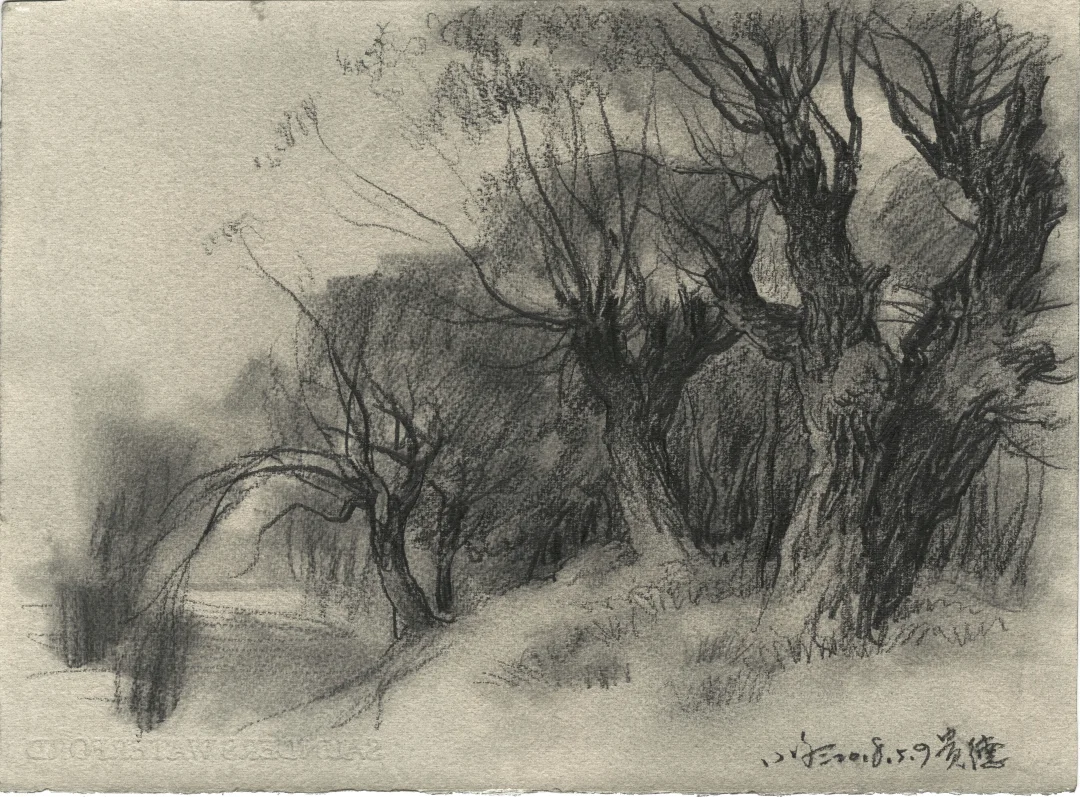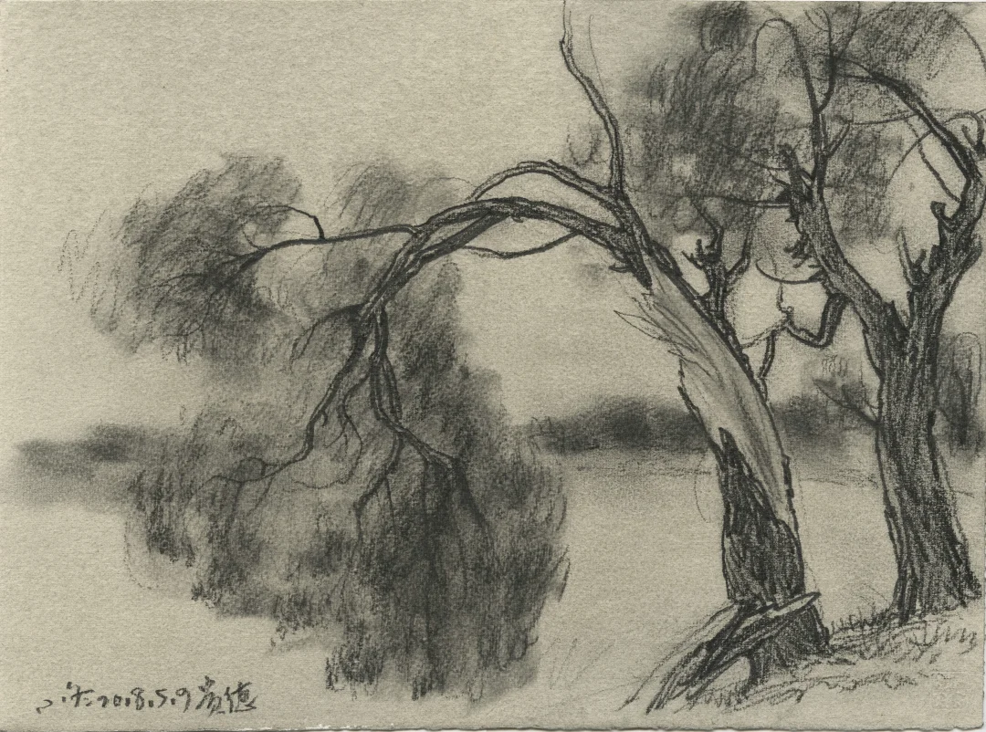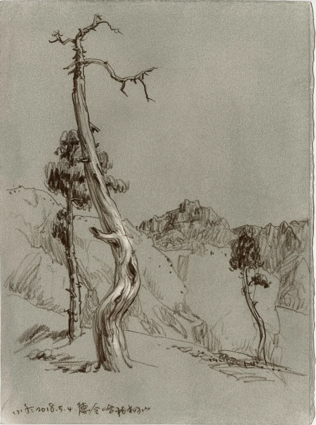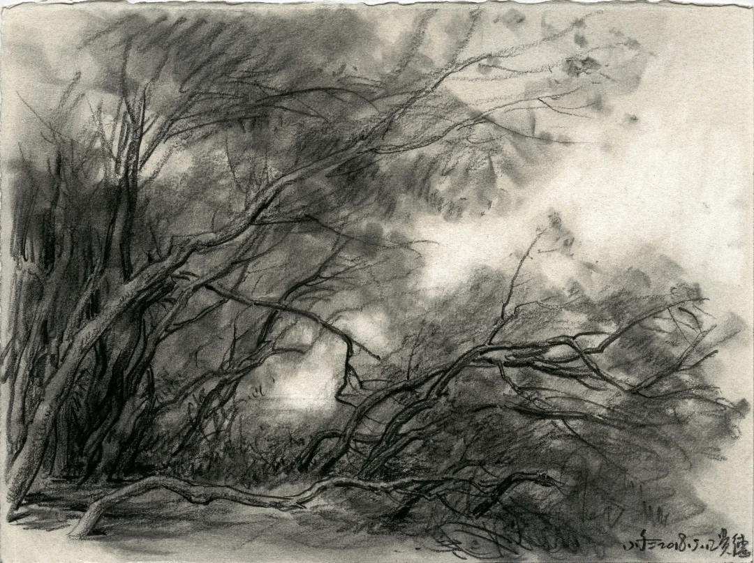 “我家门前有两棵树,一棵是枣树,还有一颗也是枣树”。鲁迅先生用最简单的文字写出空间,写出冷眼旁观者回忆过往的千钧力量。 我的速写本里有许多数,一棵是枯树,还有一棵也是枯树,又见一棵还是枯树。那些树在我经历过的不同时空里站立,在记忆里也是清晰的,他们有个性、有姿态、也有生命的尊严,像是在画一位君子。
