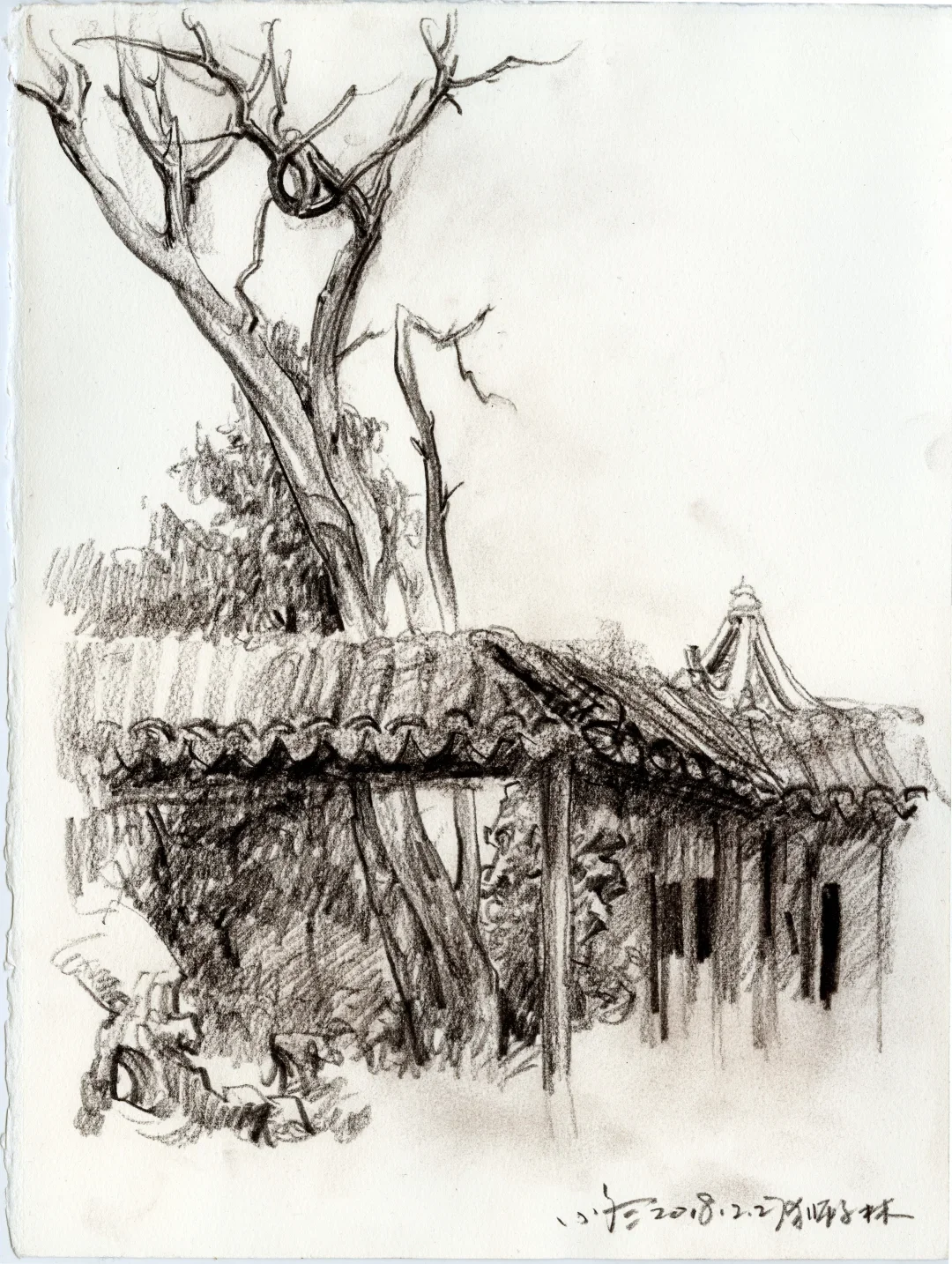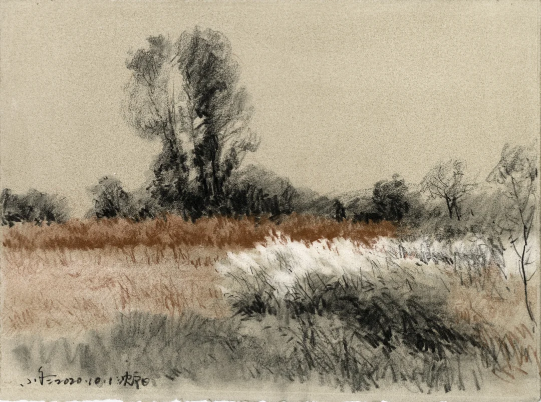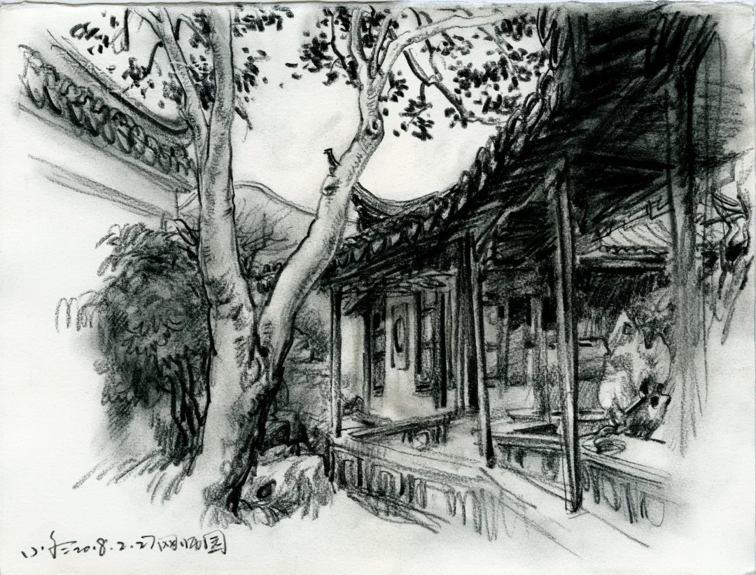 “我家门前有两棵树,一棵是枣树,还有一颗也是枣树”。鲁迅先生用最简单的文字写出空间,写出冷眼旁观者回忆过往的千钧力量。 我的速写本里有许多数,一棵是枯树,还有一棵也是枯树,又见一棵还是枯树。那些树在我经历过的不同时空里站立,在记忆里也是清晰的,他们有个性、有姿态、也有生命的尊严,像是在画一位君子。
