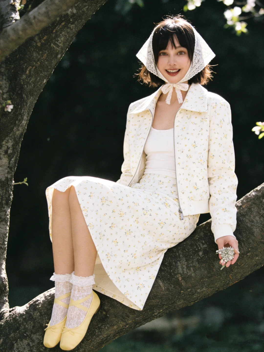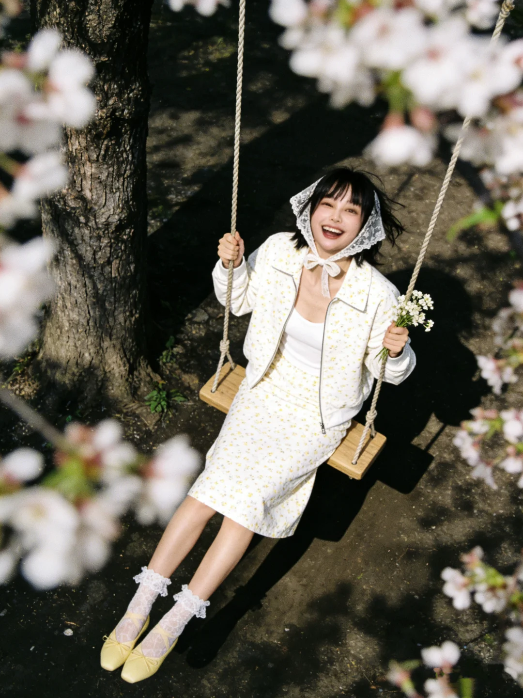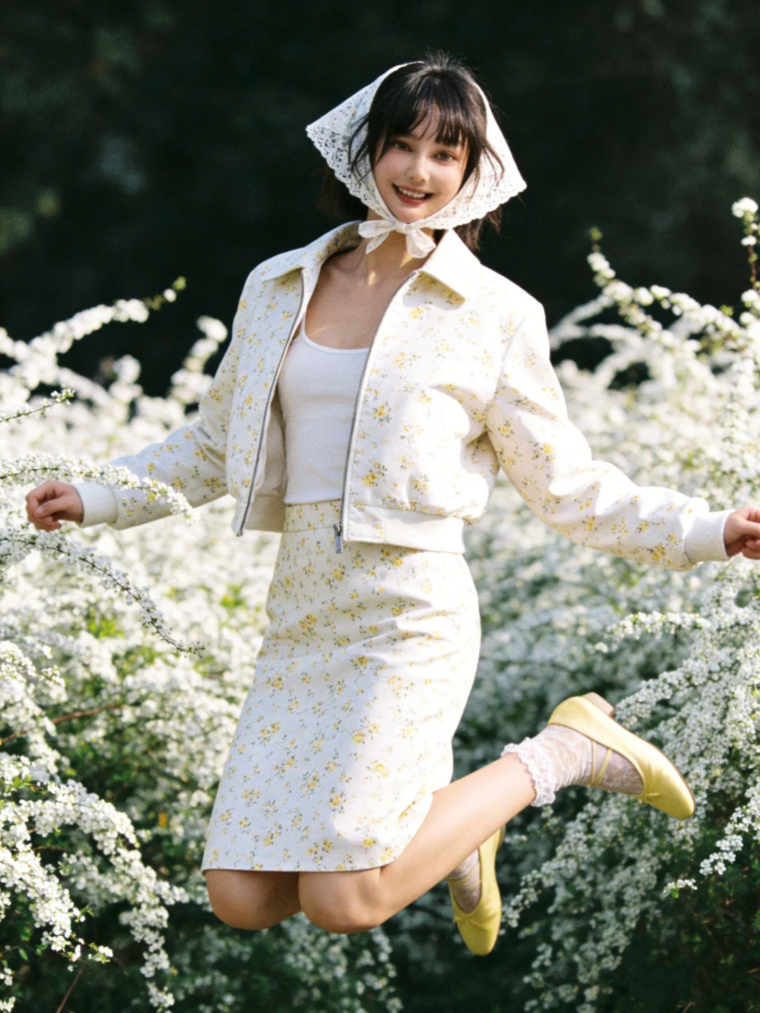雪柳是春天的雪~ 终于抓住了花开的尾巴 没想到新买的小碎花套装和雪柳这么搭~ 太有春天的氛围感了[色色R]