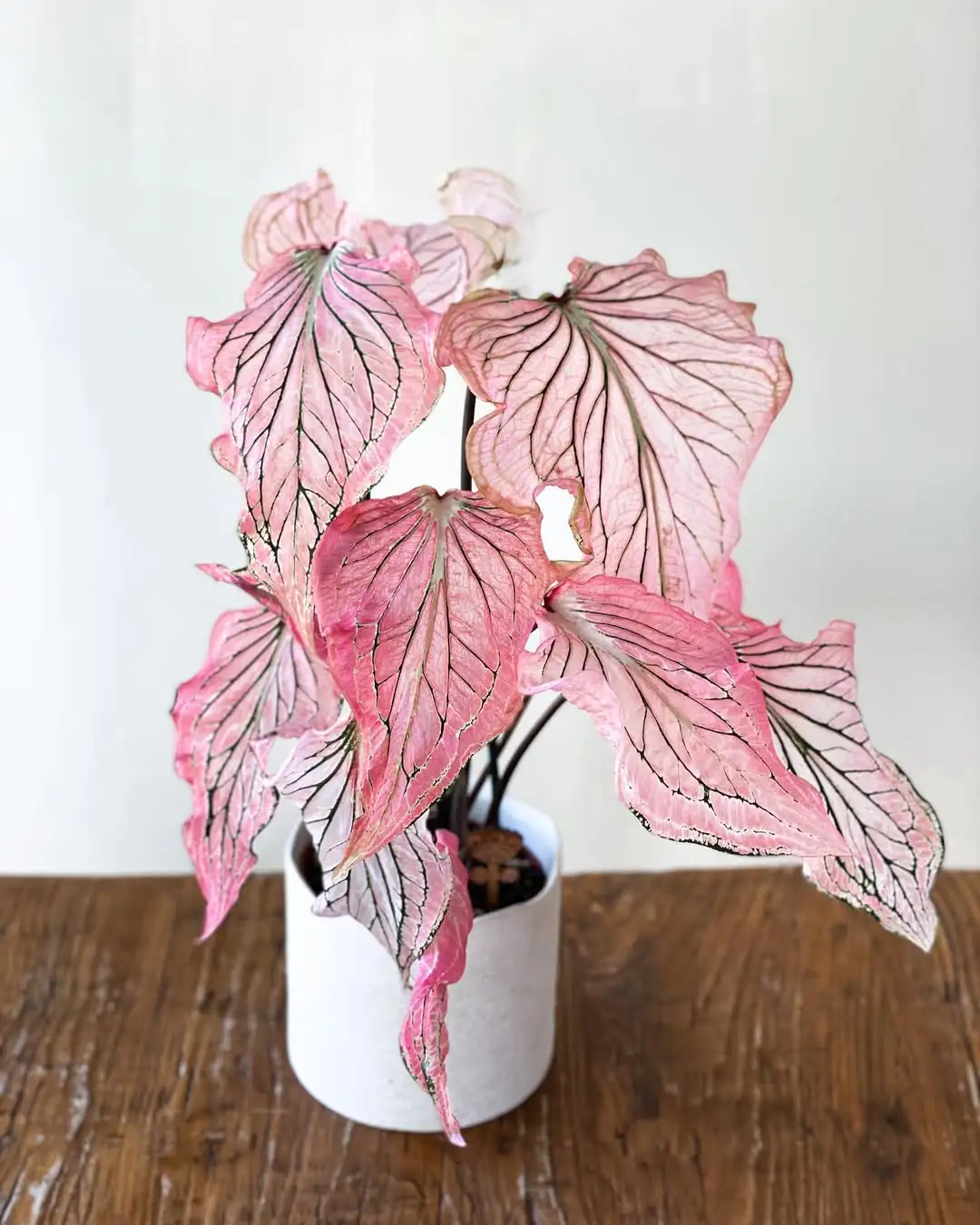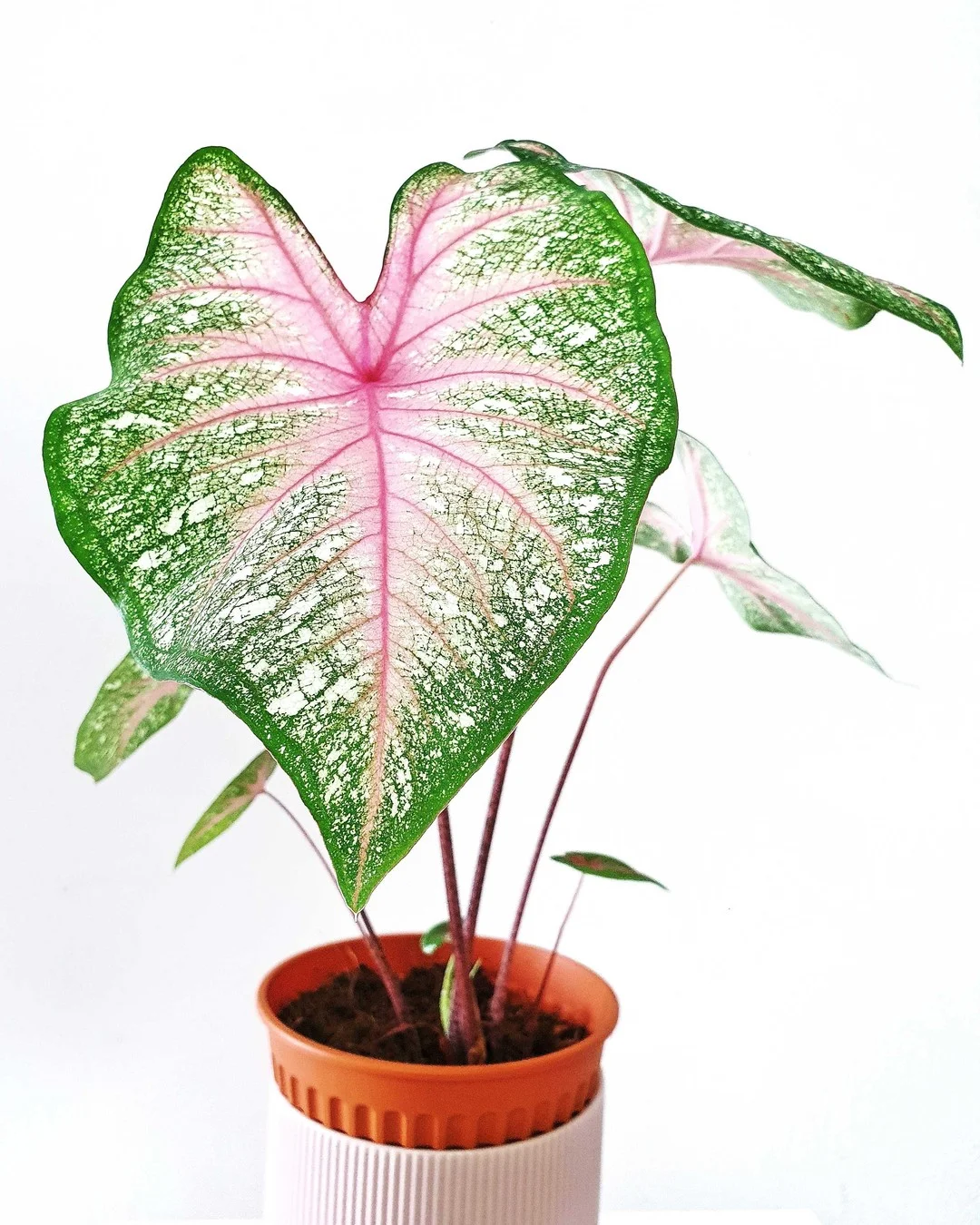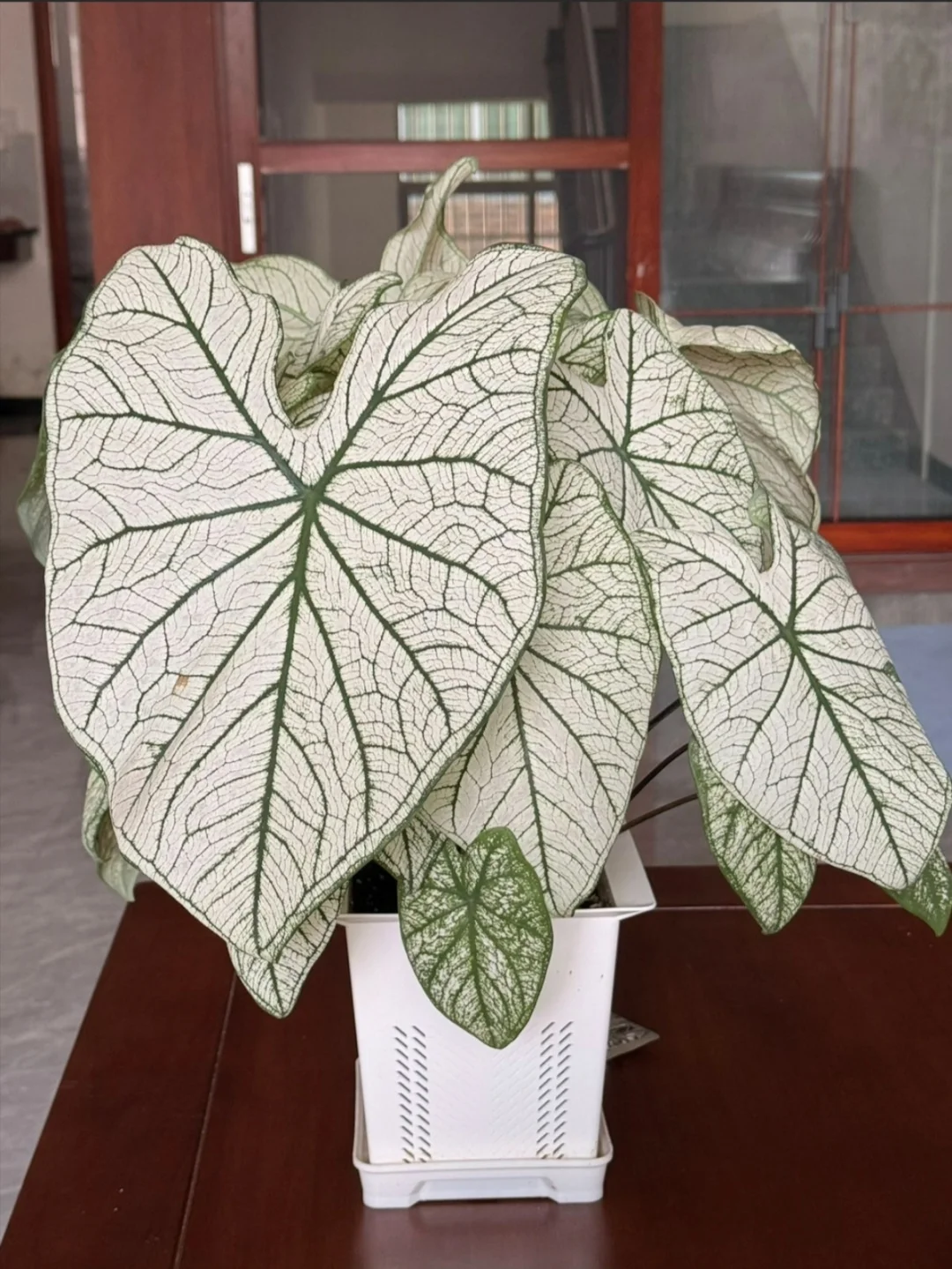 自从入了彩叶芋的坑,每天都要对着叶子“哇塞”一百遍!就是上帝打翻的调色盘🎨!每一片叶子都像是被精心手绘过的,薄薄的、透透的,自带仙女滤镜🧚♀️