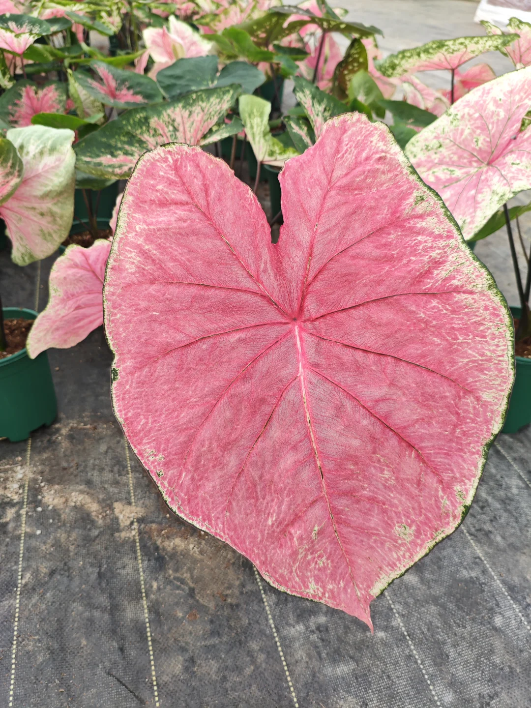 [三R]粉色和声:是粉色系彩叶芋里人气最高的品种之一,柔和的桃粉色为基底,半透明质地,脉络清晰可见,阳光一照,整片叶子像会发光一样