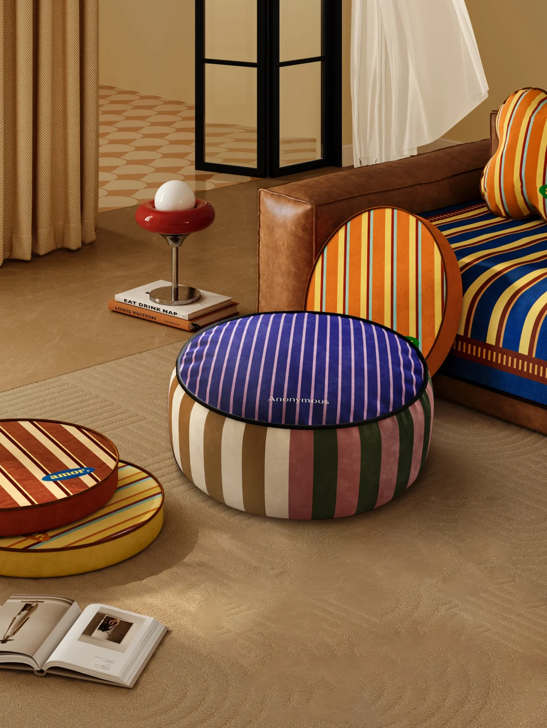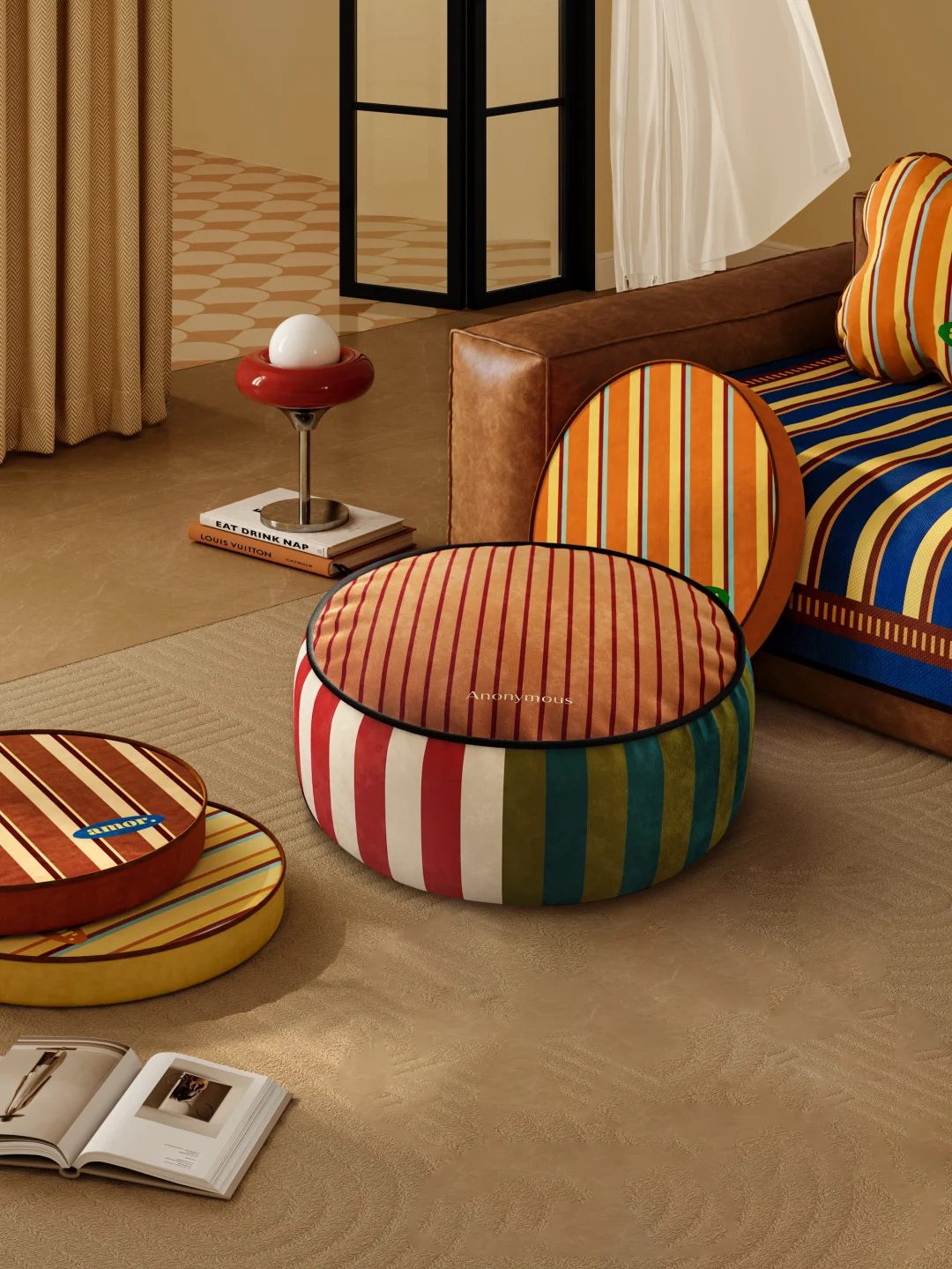 Vintage 条纹撞色 把 70s 复古画报搬进家 包豪斯线条的秩序感 碰撞明媚撞色的浪漫 有序排列的色彩 让空间满是春日鲜活能量 圆润敦实造型 + 细腻短绒面料 挺括不塌,坐感软弹又治愈 耐造抗皱,日常打理毫不费力 脚踏 / 客座 / 临时边几,一墩多用超省心 随手一放就是氛围感锚点 客厅吸睛度直接拉满,不费力的高级感拿捏了💯