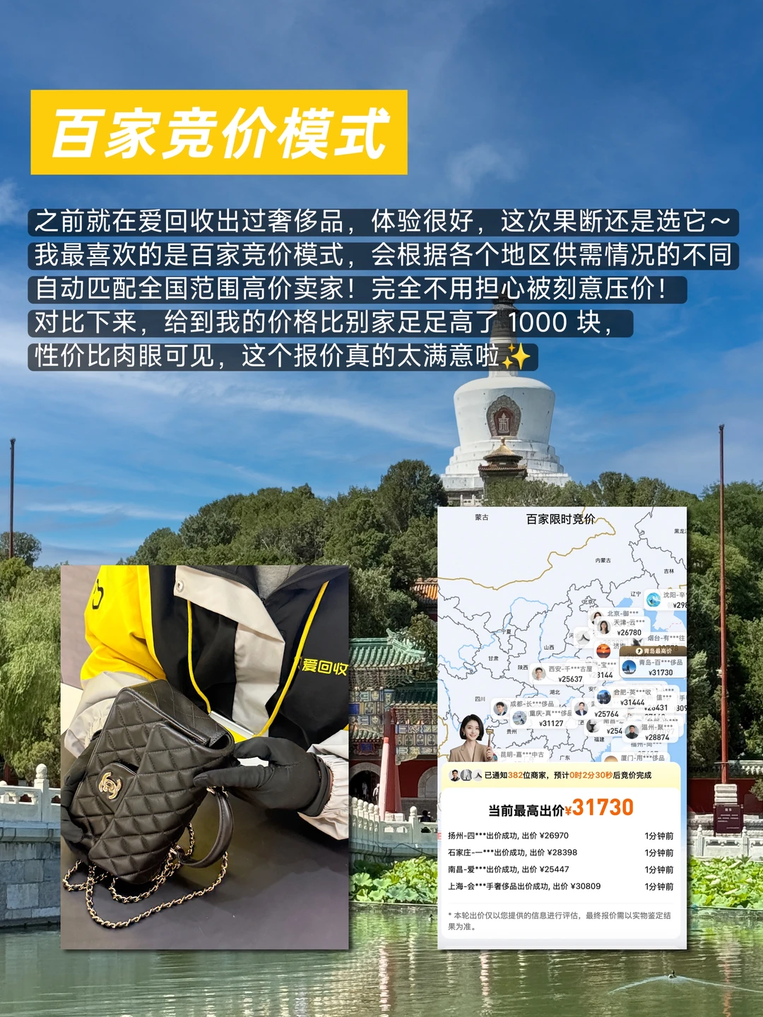 直到有一天我偶然刷到爱回收奢侈品回收体验真的超出预期!我最喜欢的是他们的百家竞价模式,他会根据各个地区供需情况的不同,自动匹配全国范围高价买家!完全不用担心被压价!最后我的包包一路稳步冲高锁定 31730 元成交!