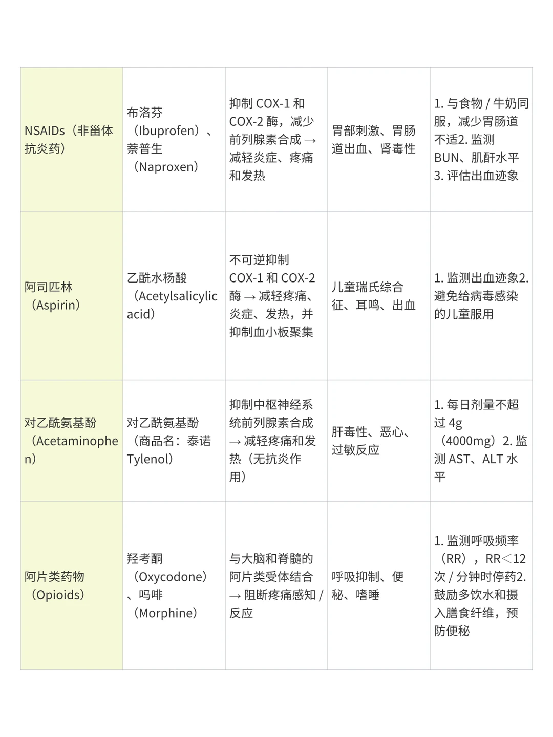 今日份分享学习关于疼痛相关的药物内容 中文对照表格在第二页哦 仅供参考 护理英语提升 Rn考试知识