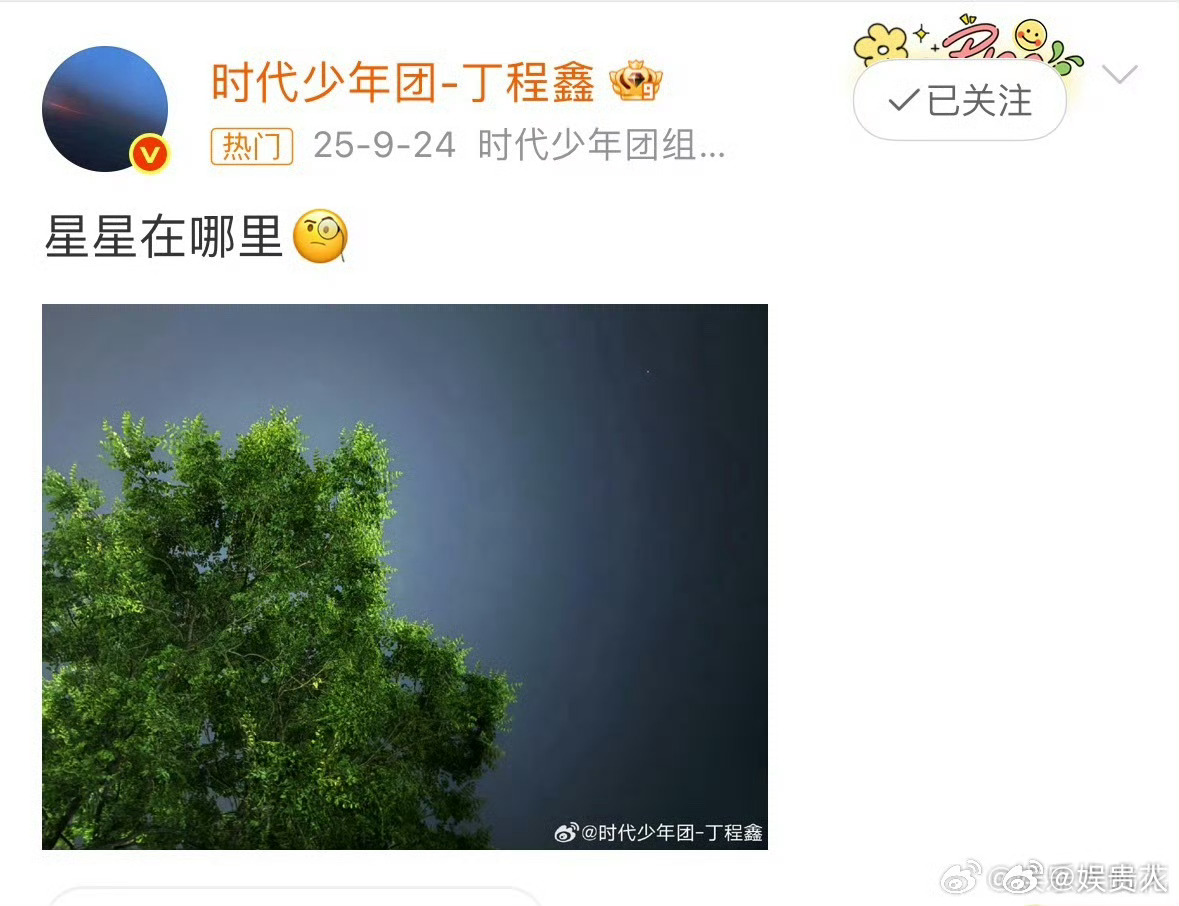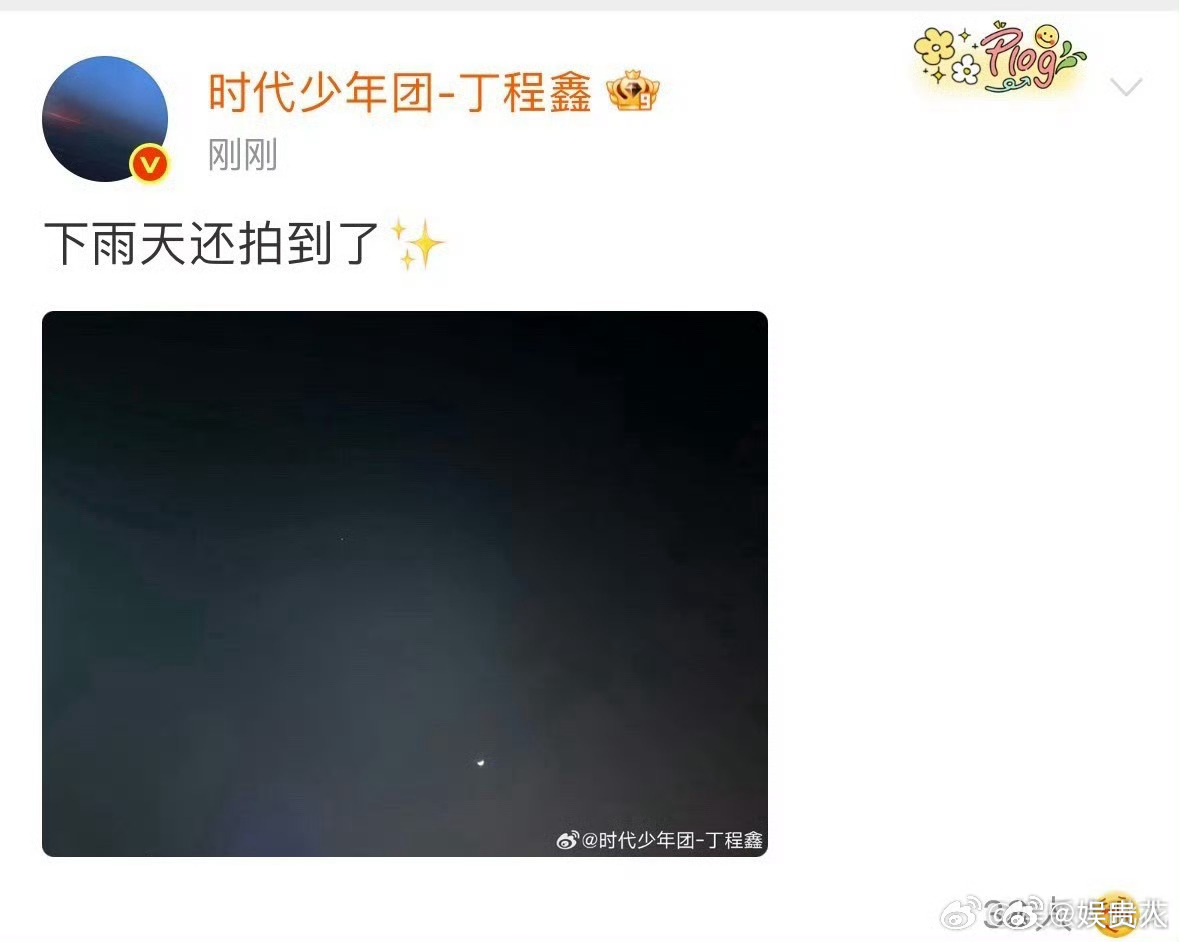 丁程鑫下雨天也拍到了星星丁程鑫拍的下雨天的星星 微博里抖出的生活碎片,真的是一个