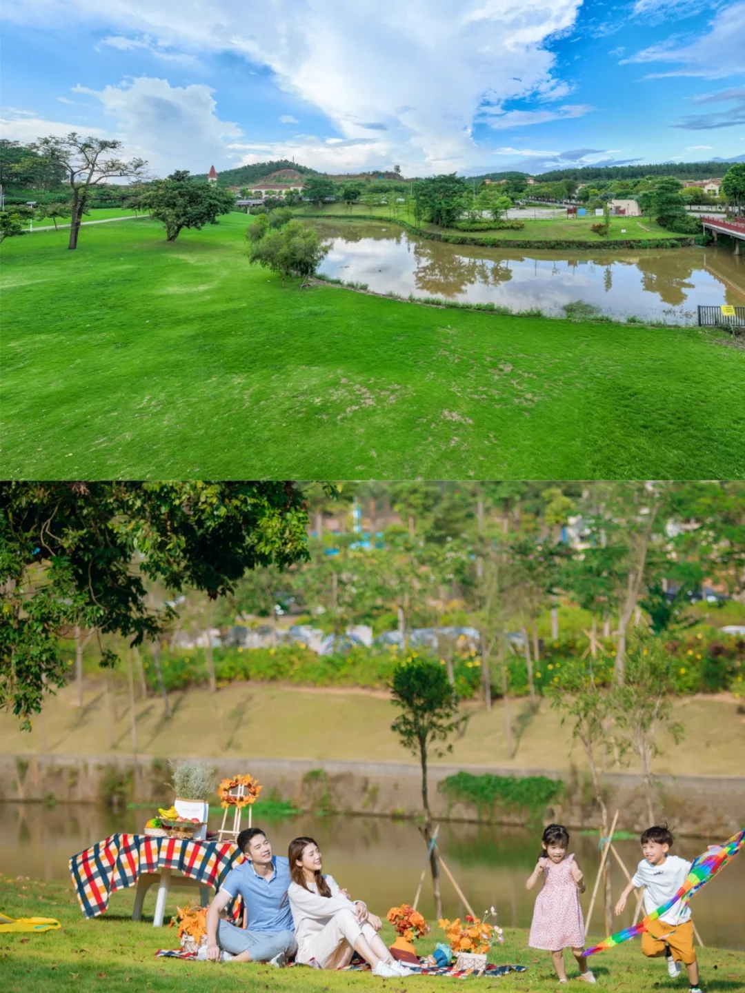 理由:草坪开阔平整,背靠湿地,附近有樱花与黄花风铃木。配套设施完善(洗手间、观光车),野餐后可喂鹿、划船、骑行,实现“野餐+度假”完美组合。