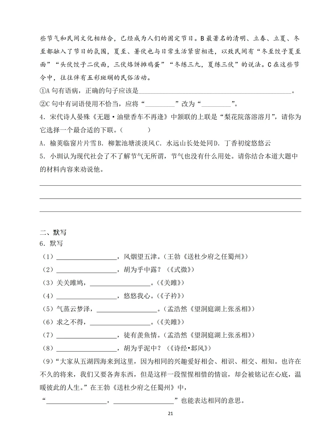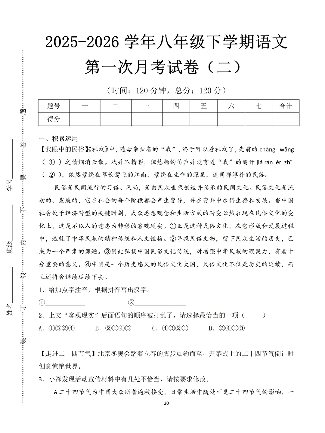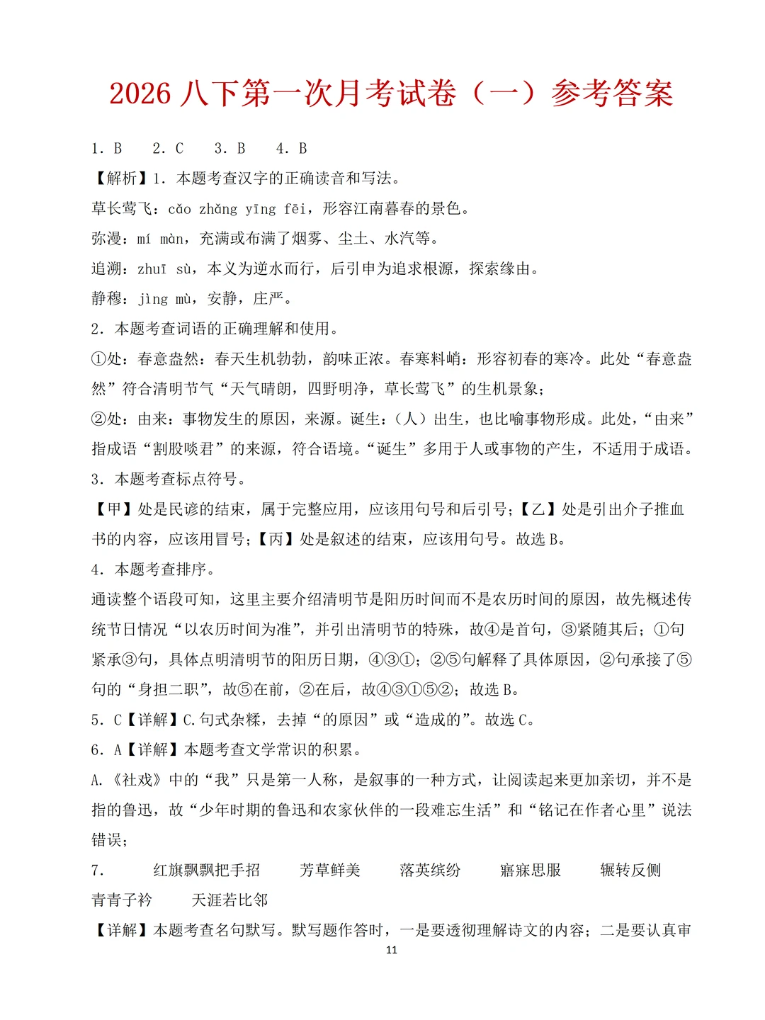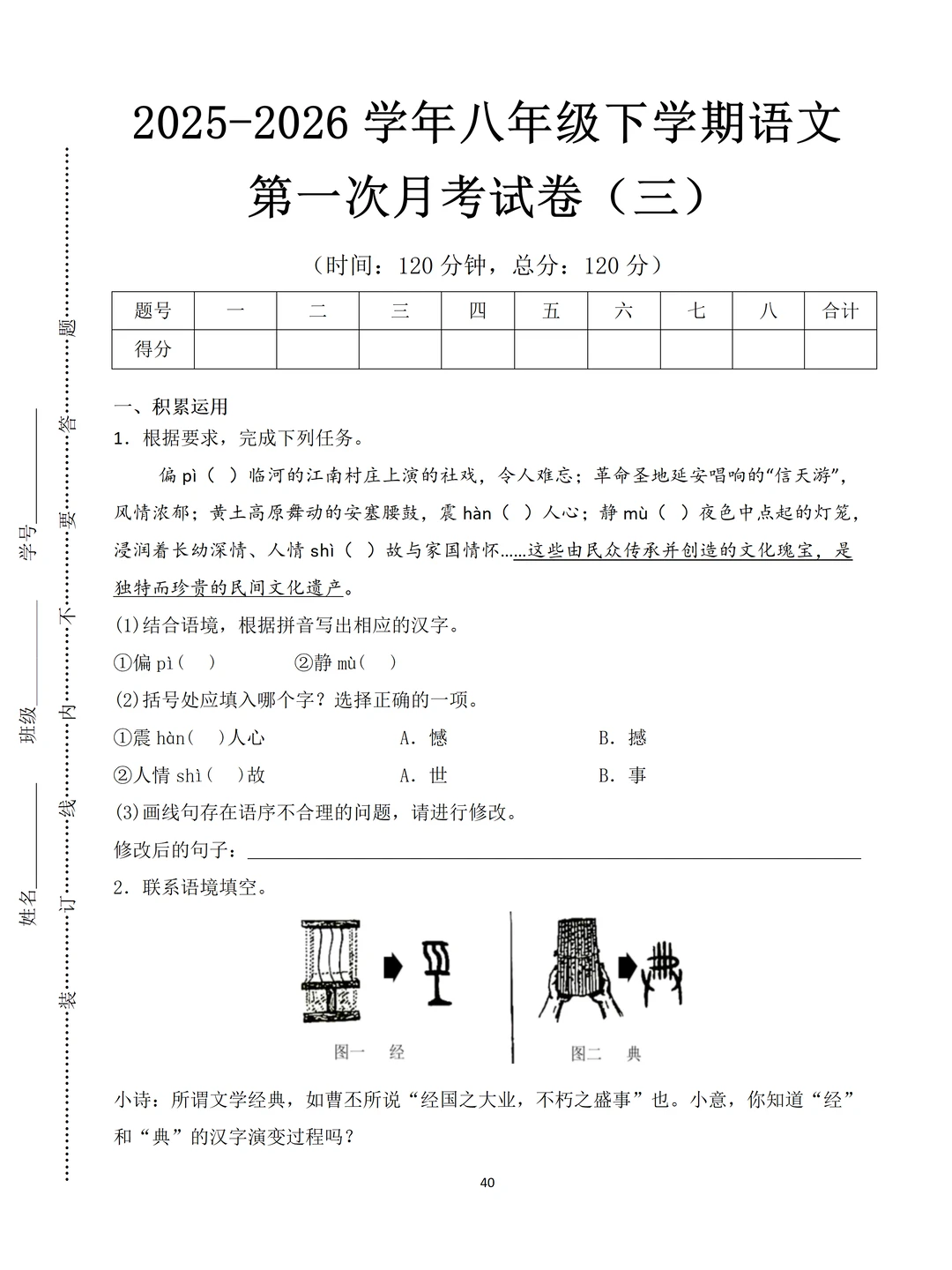 [害羞R]最近好多家长问我:“老师,有没有八年级下册语文的第一次月考的试卷?娃马上要考试了,想让他练练手”