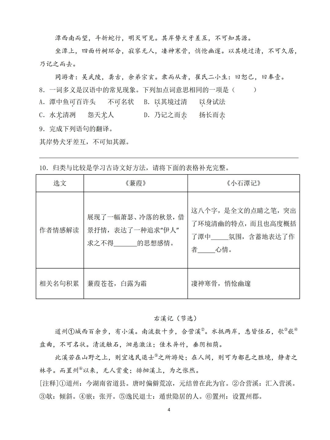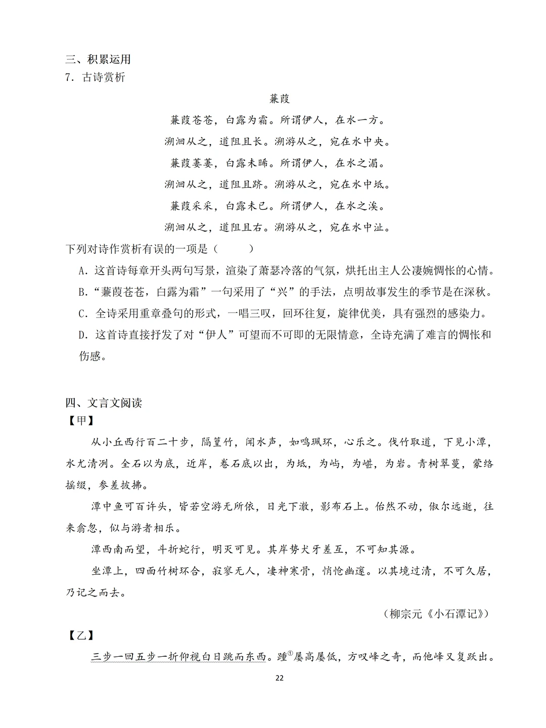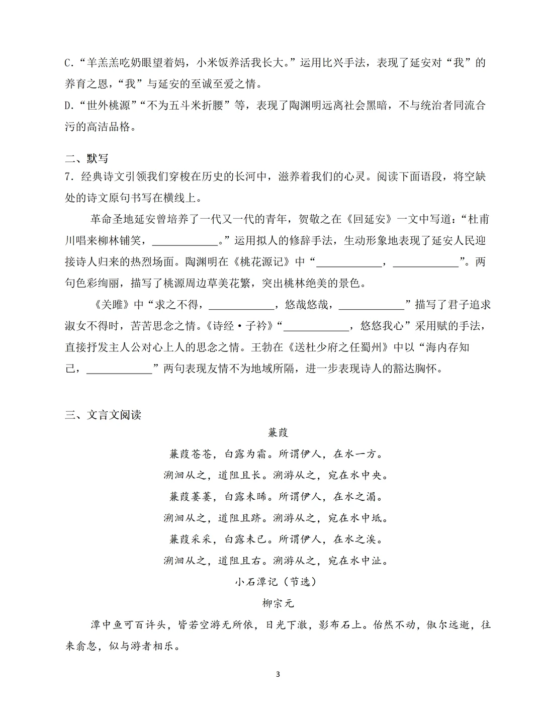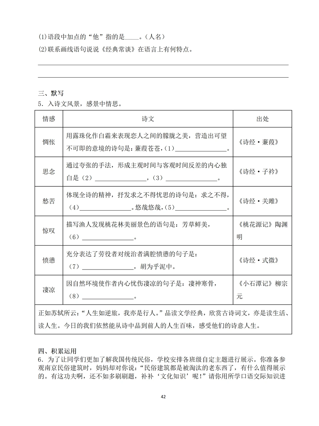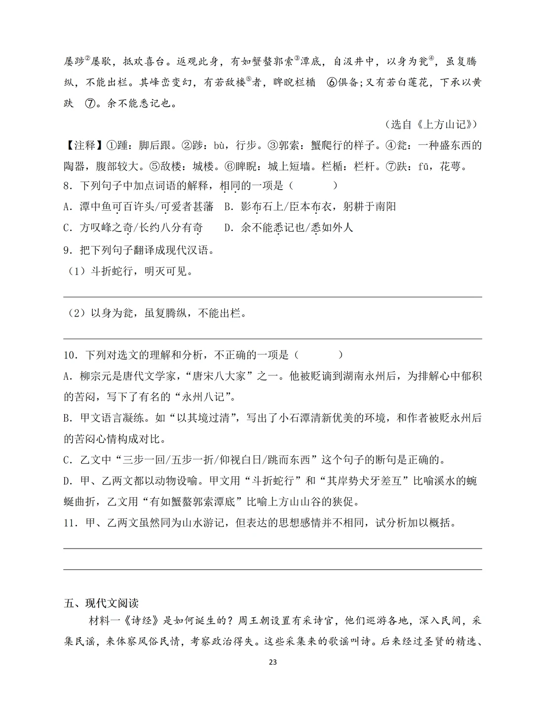 八下第1-2单元的知识+第3单元的《诗经》2首+【课外古诗诵读】4首诗+《桃花源记》和《小石潭记》+名著《经典常谈》