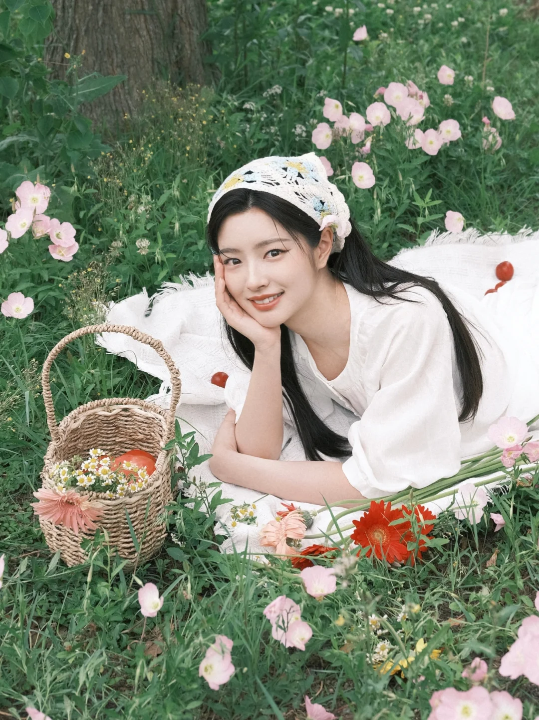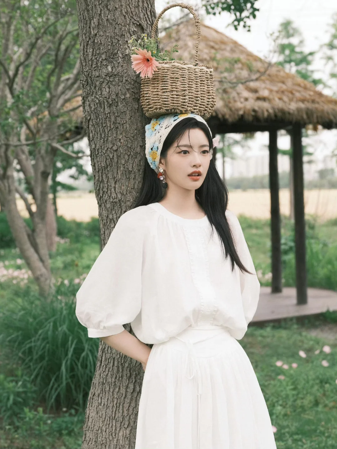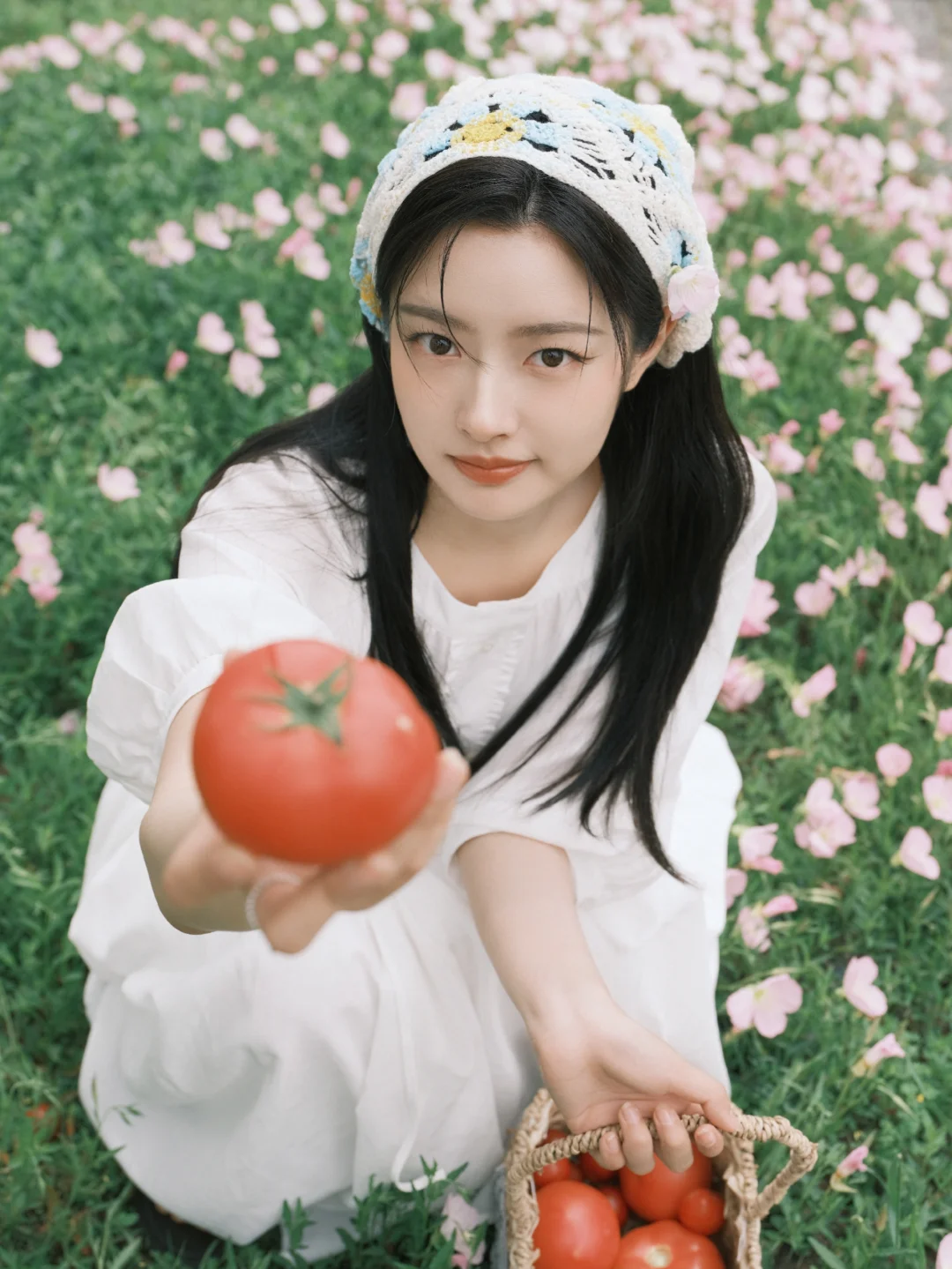 📷春日写真&公园拍照参考 范思蓝恩选择徐若晗作为代言人其实挺适合的,徐若晗干净舒展的韩系长相,温柔又有气质,与品牌简约通勤、轻优雅的定位很匹配。在这组春日写真里,她身穿品牌白裙,整体风格清新治愈,自然灵动,完美展现出服装的质感和春日氛围感。场景选择在开着鲜花的草地,搭配番茄和果篮等很有田园氛围的道具,温柔治愈也充满生机,和这套简约白裙的干净松弛感很契合。同时这组写真在穿搭、场景、道具、姿势上也可以给大家作为春日写真的模版。 图片来源:徐若晗微博 明星穿搭:范思蓝恩