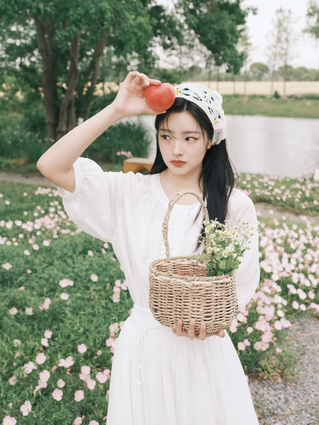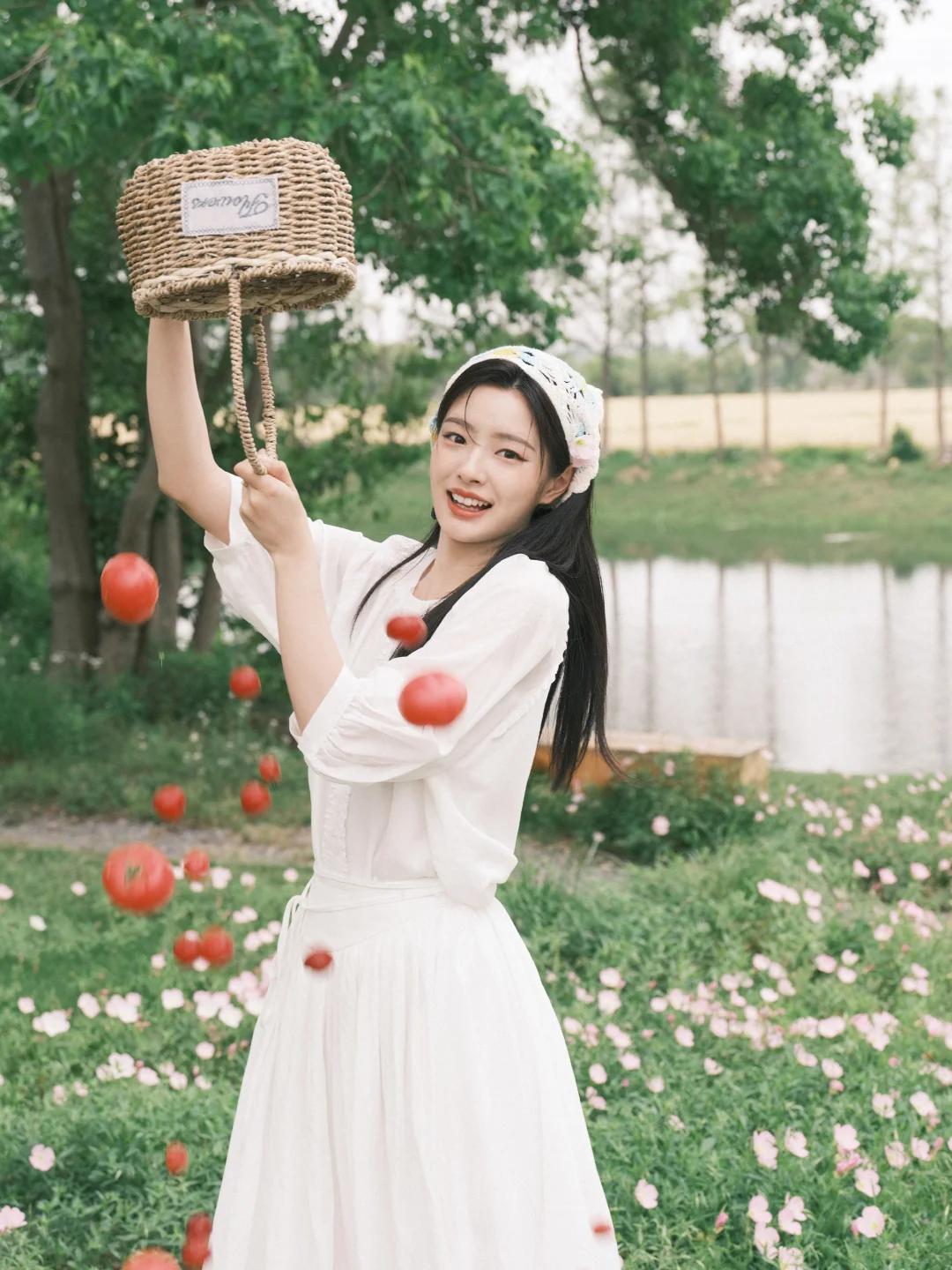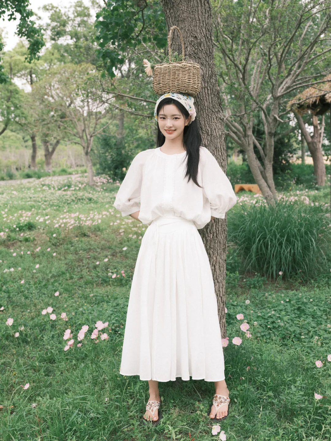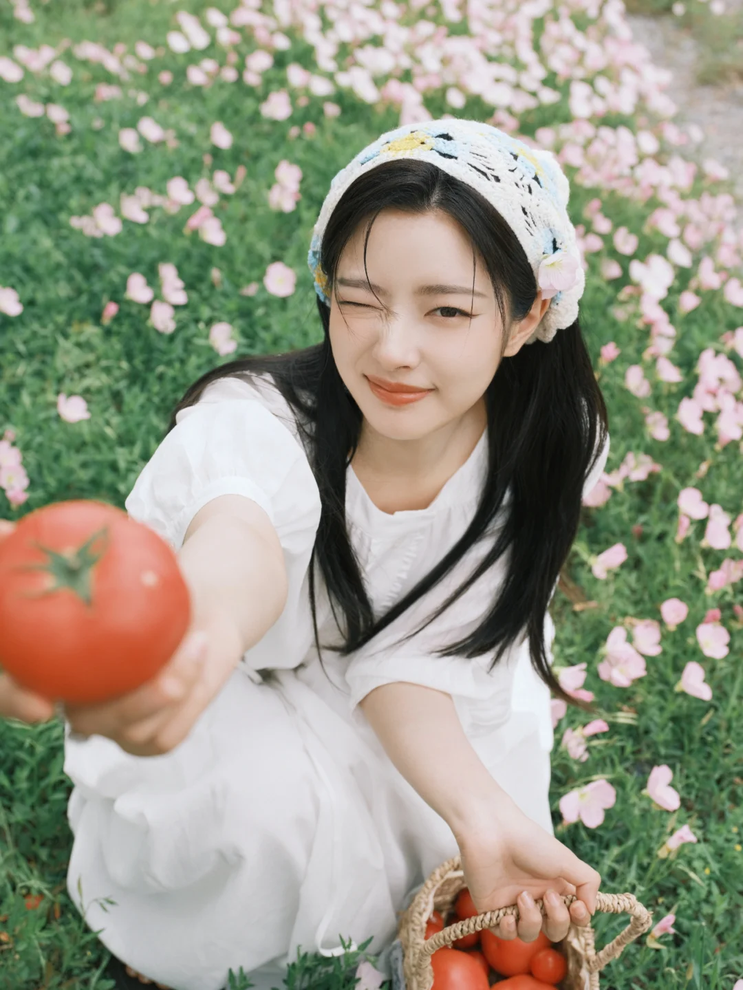 📷春日写真&公园拍照参考 范思蓝恩选择徐若晗作为代言人其实挺适合的,徐若晗干净舒展的韩系长相,温柔又有气质,与品牌简约通勤、轻优雅的定位很匹配。在这组春日写真里,她身穿品牌白裙,整体风格清新治愈,自然灵动,完美展现出服装的质感和春日氛围感。场景选择在开着鲜花的草地,搭配番茄和果篮等很有田园氛围的道具,温柔治愈也充满生机,和这套简约白裙的干净松弛感很契合。同时这组写真在穿搭、场景、道具、姿势上也可以给大家作为春日写真的模版。 图片来源:徐若晗微博 明星穿搭:范思蓝恩