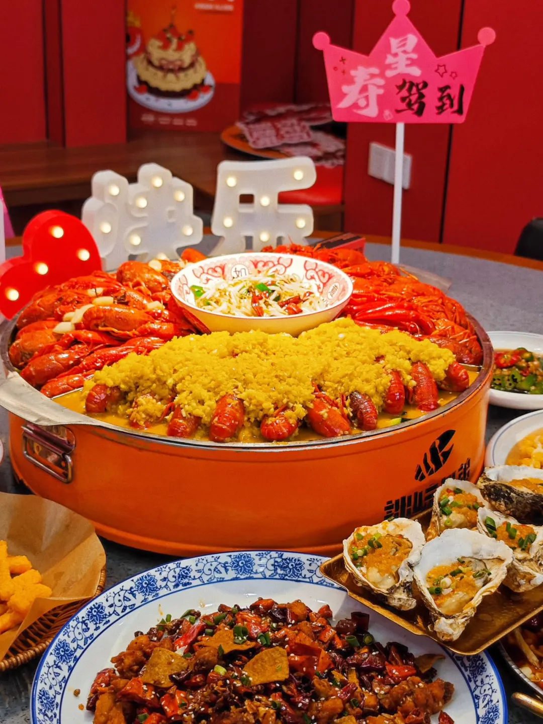 小榄过生日吃小龙虾🦞有包厢还帮布置!