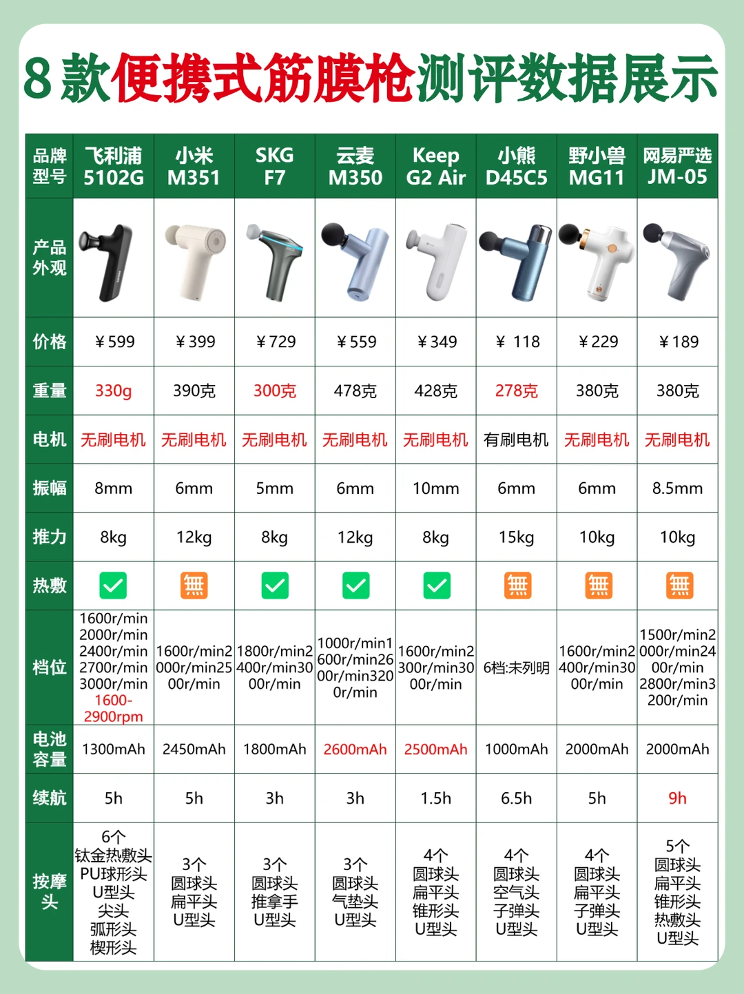 ✅个子迷你,口袋里的按摩师,仅330g重量,每分钟却可提供最高3000±10%rpm的击打,专业的运动性能。