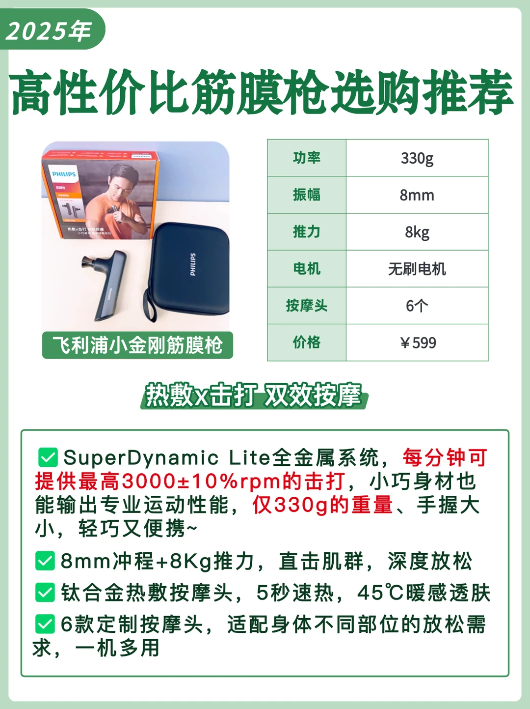 推荐飞利浦小金刚筋膜枪,热敷x击打 双效按摩,超快放松~