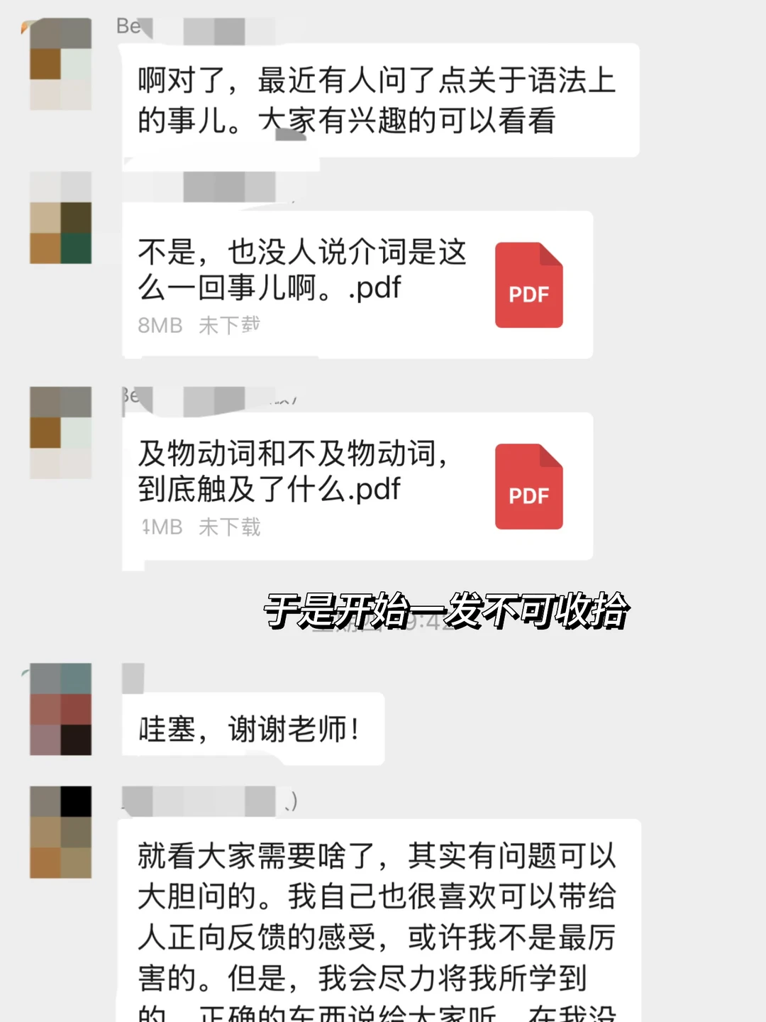 不问不知道,一问吓一跳,随后这个同学又刷刷刷在群里转发了很多个他学习英语的心得体验