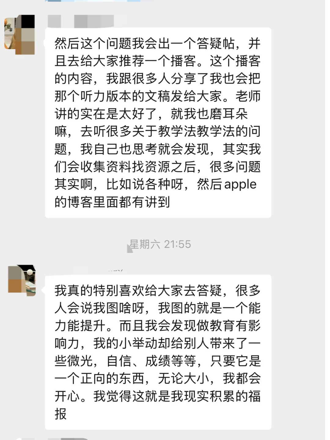 而后每天都会有同学提出自己学习上的困惑,大家互相帮助,互相分享自己生活中的趣事,这就该是学习本身的样子。