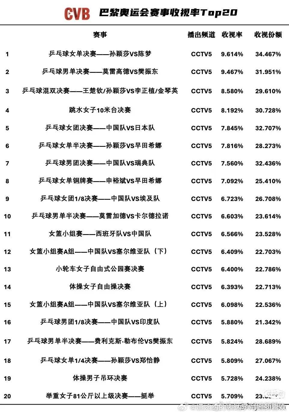我就看你们顶流梦被孙颖莎打破,男队粉丝为什么就不能承认收视率就是不如孙颖莎呢