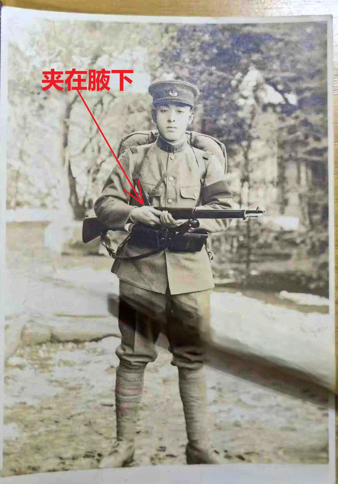 原来大多数电视剧里面的日军持枪动作都拍错了。请看下面这张照片,一名正在站岗的日军士兵。请注意看他的持枪动作,根本不是像电视剧那样把步枪背在身后,而是把枪夹在腋下,双手一前一后的环抱枪身。所以,我们基本上都被电视剧欺骗了。