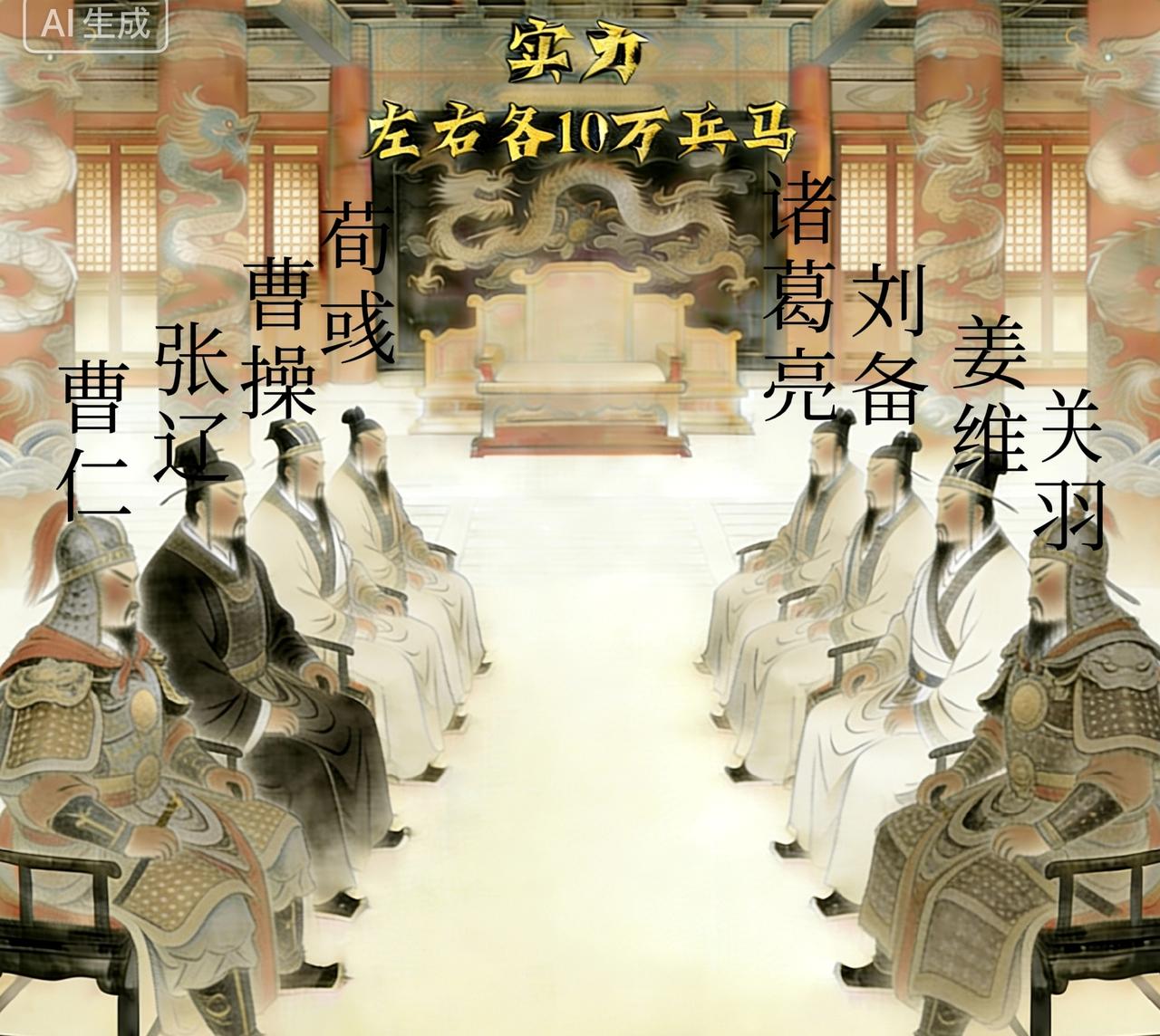 实力左右各10万兵马:曹刘巅峰对决,谁能胜出? 汉末两大阵营的决战:曹操、荀彧、张辽、曹仁统领10万精锐,刘备、诸葛亮、关羽、姜维亦率10万雄师隔案相望,兵力相当,阵容各有千秋。 曹魏阵营挟天子以令诸侯,荀彧统筹粮草,张辽、曹仁攻守兼备,曹操本人雄才大略,麾下军纪严明、战力强悍;蜀汉阵营以道义聚人心,诸葛亮运筹帷幄,关羽、姜维勇冠三军,刘备仁德驭下,将士效死力。 一边是权谋兵锋,一边是仁德奇谋,若真兵戎相见,究竟谁能问鼎天下?这场纸面对决,或许正是三国最迷人的悬念。