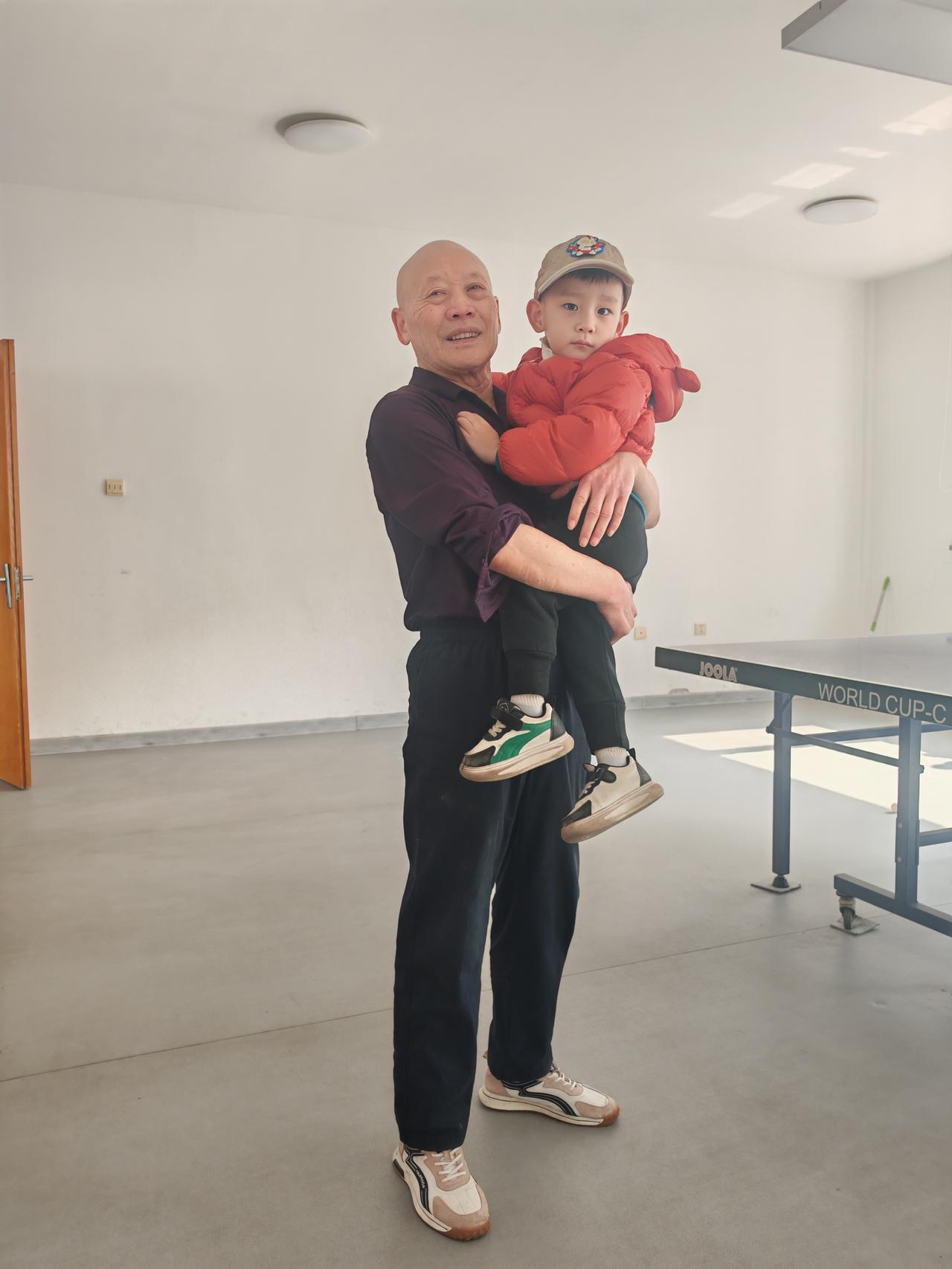 前天,去了一位老友经常打球的活动室,顺便看望一下久违的几位球友。 由于是临时起意去那里,球拍也没带。与大家寒暄后,还想一起打打球。 还好,活动室里留有老友的备用球拍,于是操起球拍和大家对练起来。 经常打球的人知道,如果不是自己的专用球拍,使用起来未必顺手。 不过,老友的这块备用球拍,虽然看着旧了点,使用起来真是感觉不错。 使用中,我顺便问了一下与我对练的老友,我说:"这块拍子是谁的?”他说:“是老尹的呀!” 听到这话,我仔细端详了球拍,看着看着想起来了。这不是我十多年前,为老尹量身定做的那块球拍吗? 真没想到,时隔这么多年,它仍然还在服役。而且,使用起来还是那么顺手,连我自己都为之感到骄傲。 打球中,可巧真的碰到老尹手抱小孩来到活动室。老友相见格外亲,谈话中,又说到这块球拍。这几年,随着球技的提高,他换了一块日本蝴蝶球拍。不过,原来定做的那块球拍,放在活动室里,做备用,偶尔还会拿着使用,用起来还是比较顺手。 与老友们相见,时间总是过得那么快,不知不觉到了中午该分手的时刻。 赶紧让老尹抱着自己的重外孙,照张照片留作纪念。他这可是四世同堂呀!真的令人羡慕,祝老尹身体健康,将来五世同堂!