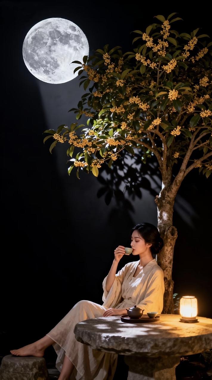 月色如银,美人如画。