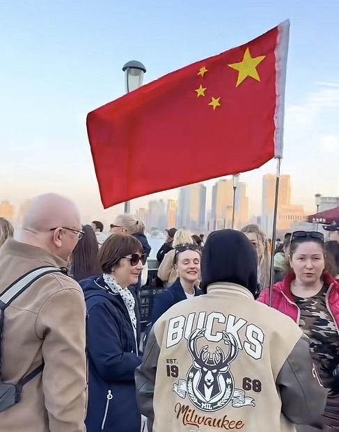 外滩这一幕, 看得人热血沸腾 金发碧眼,手举五星红旗, 笑得比外滩为灯光还亮。 评论区炸了: “红旗飘扬太有感觉了” “老外也爱上中国了”。 有人问:至于吗? 至于。 你知道这意味着什么吗? 不是一面旗被举起来, 是一个国家被认可了。 不是几个老外在拍照, 是全世界在用脚投票。 以前是中国人举着旗走出去, 现在是外国人举着旗走进来。 以前我们追着世界跑, 现在世界主动向我们招手。 这就是自信。 不是喊出来的,是长出来的。 外滩这面旗,举在外国人手里, 比举在自己人手里还让人激动。 为什么? 因为真正的强大, 不是你夸自己有多好, 而是别人心甘情愿替你夸。 红旗飘飘, 飘的是国力,飘的是底气。 这一幕,值得每个人看三遍。 第一遍,看热闹。 第二遍,看门道。 第三篇,看懂了一一 一个时代,真的变了。