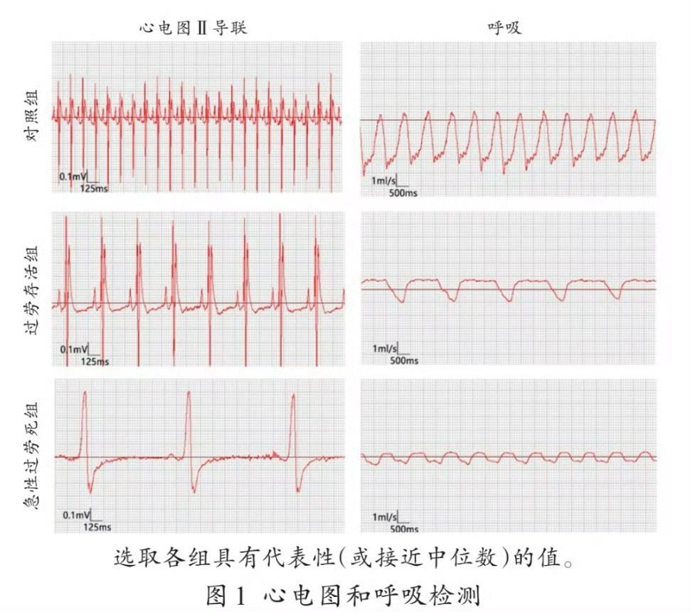 ² 游完以后强制剥夺睡眠,让它们站在“水牢”里,水深超过体长,无法躺卧睡觉。如此反复“力竭式”处理6天,统计猝死情况,解剖、探索过劳死特异性生理指标。划重点:小白鼠心电图变化明显。在第1天就开始出现心动过速,第3天就开始出现严重心律失常导致的猝死,第6天死亡率高达33.3%。