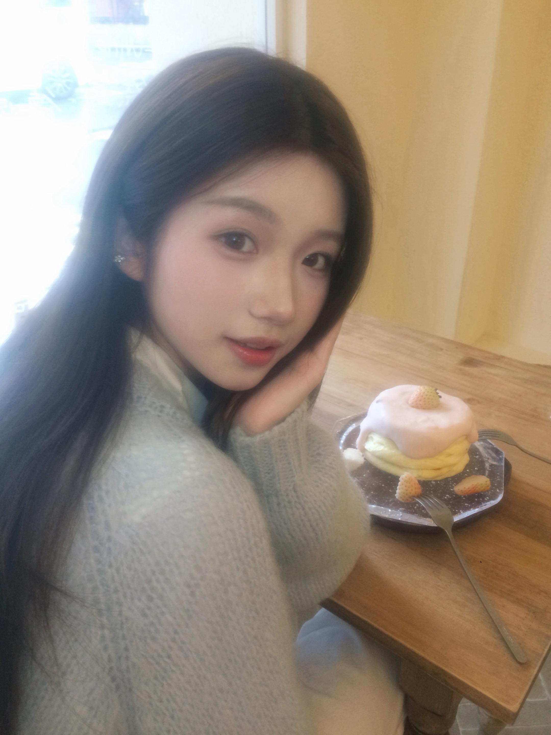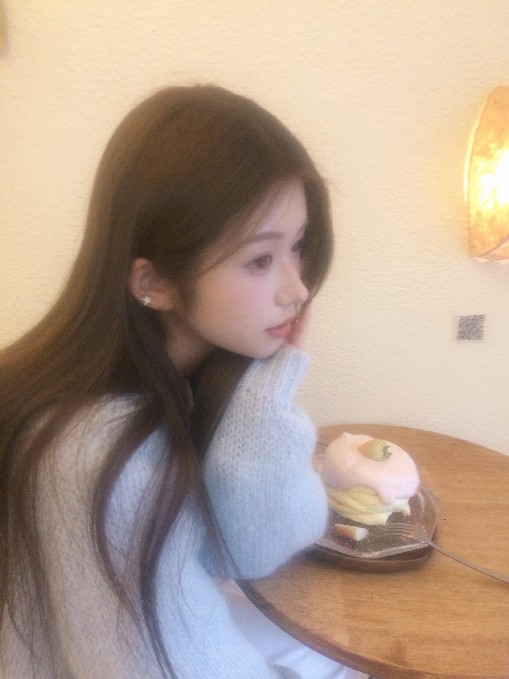 🍰。 好喜欢这件奶蓝色的针织开衫 非常春天的配色 除了白衬衫也...