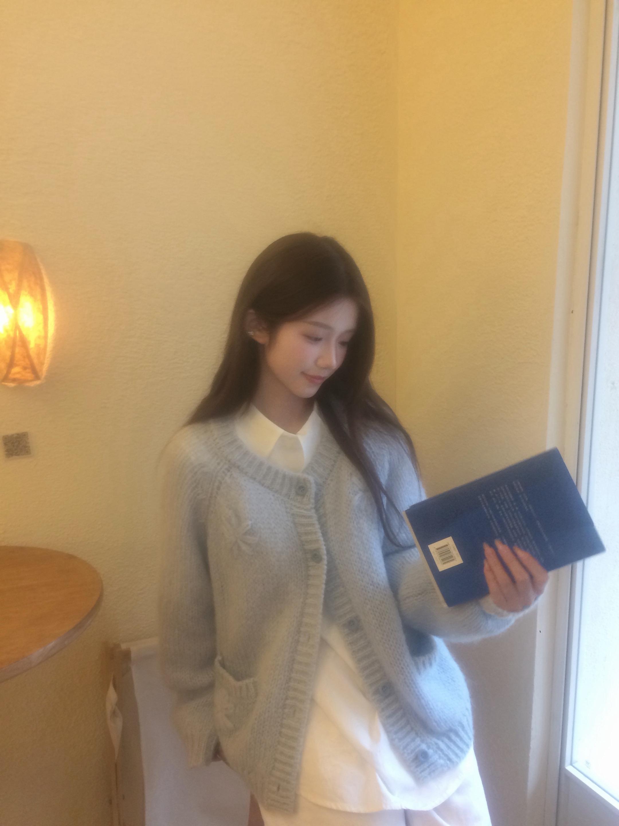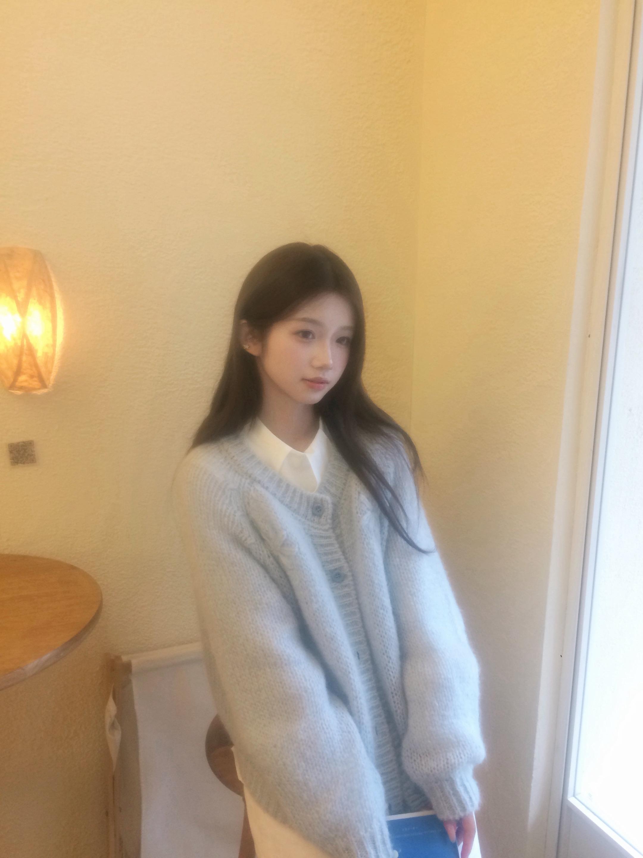 🍰。晒出我的春日百搭开衫 慵懒风 咖啡馆拍照 po图晒晒我的心头好 好喜欢这件奶蓝色的针织开衫 非常春天的配色 除了白衬衫也很适合搭配小裙子 🧥:CHALAMON