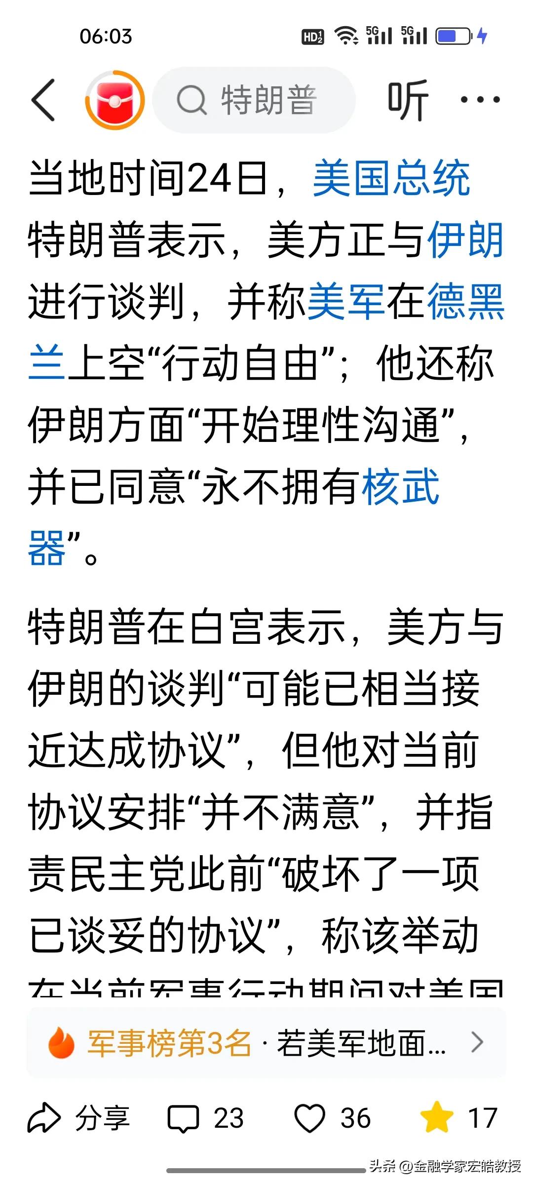 刚刚,根据《央视新闻》报道,特朗普突然放话伊朗“永不拥核”,这番表态究竟有几分真? 2018年美伊就核问题达成《伊核协议》,后美国单方面退出,局势再度紧张。 如今特朗普单方面宣称伊朗同意弃核,其言论更像是谈判筹码,而非既定事实。 伊朗官方至今未正面回应,此前还曾否认与美谈判,核问题谈判向来反复,仅凭总统一面之词,根本无法当真。 但是特朗普从昨天表态“非常有意愿与伊朗达成协议”,到今天单方面宣布伊朗“永不拥核”,他自己已经主动在推进谈判议程,不难发现,特朗普是真的想尽快结束这场本不该发生的战争。