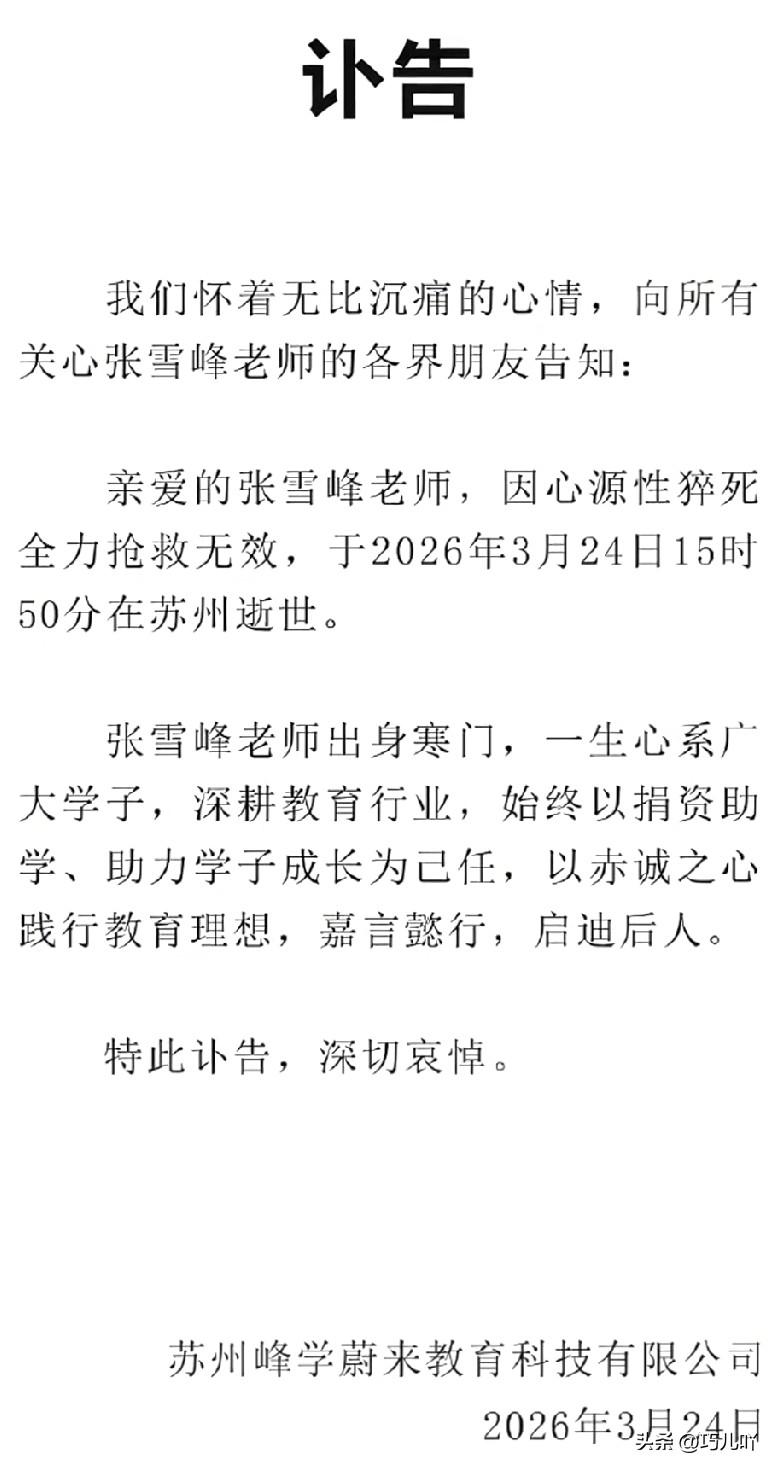 我和张雪峰素不相识,可他出身寒门,致力寒门,为学子们指引方向,我希望这个消息是假的。 张雪峰的突然离世,让无数网友发出这样的慨叹。任何一个明星、网红去世,网友们都没有这么难过和遗憾。为什么? 因为他敢说真话,为无数高考学子指明了方向,更是普通家庭孩子的灯塔。 新一年高考季即将到来,也正是无数高三学子填报志愿的时候,可偏偏在这个时候张雪峰走了,真是天妒英才啊! 张老师,一路走好!