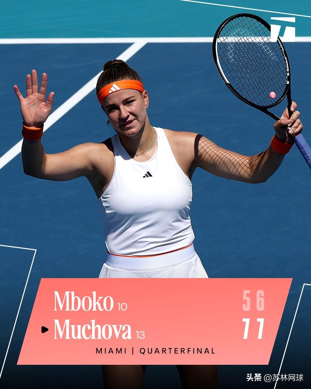 迈阿密女单1/4决赛 🇨🇿穆霍娃7-5/7-6姆博科🇨🇦 男单八强战 ?