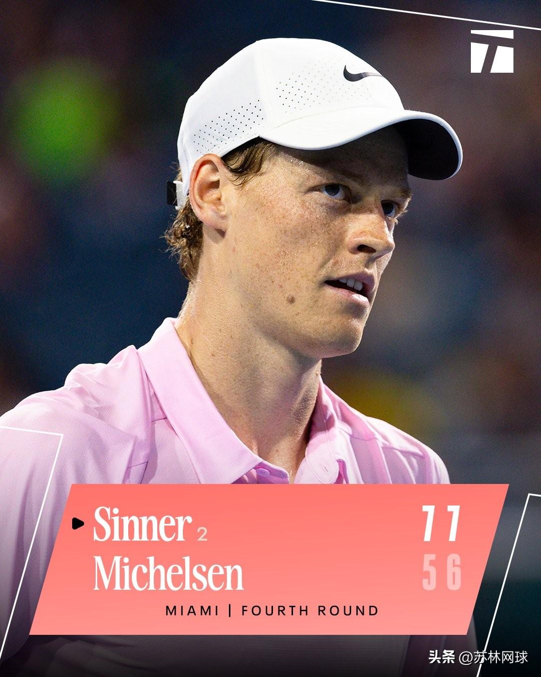 迈阿密女单1/4决赛 🇨🇿穆霍娃7-5/7-6姆博科🇨🇦 男单八强战 🇨🇿莱赫卡6-4/6-7/6-2弗里茨🇺🇸 🇺🇸保罗6-1/6-3安切维里🇦🇷 🇮🇹辛纳7-5/7-6米克尔森🇺🇸 辛纳9连胜。