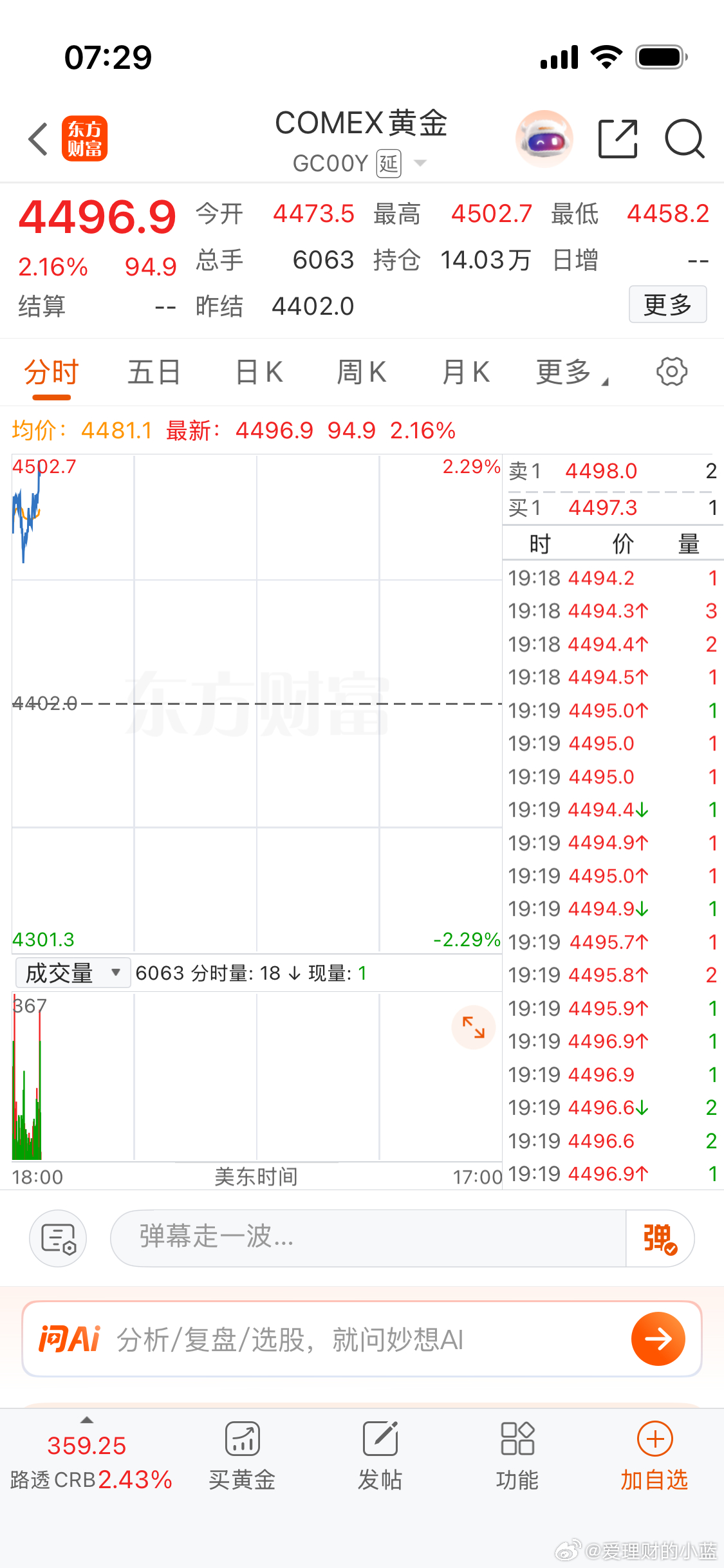 晚安。美股低开低走。现货黄金 金价反弹。各位上市公司股东们。不要只看不互动播报博