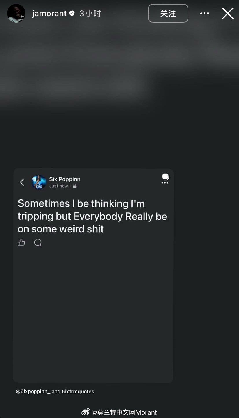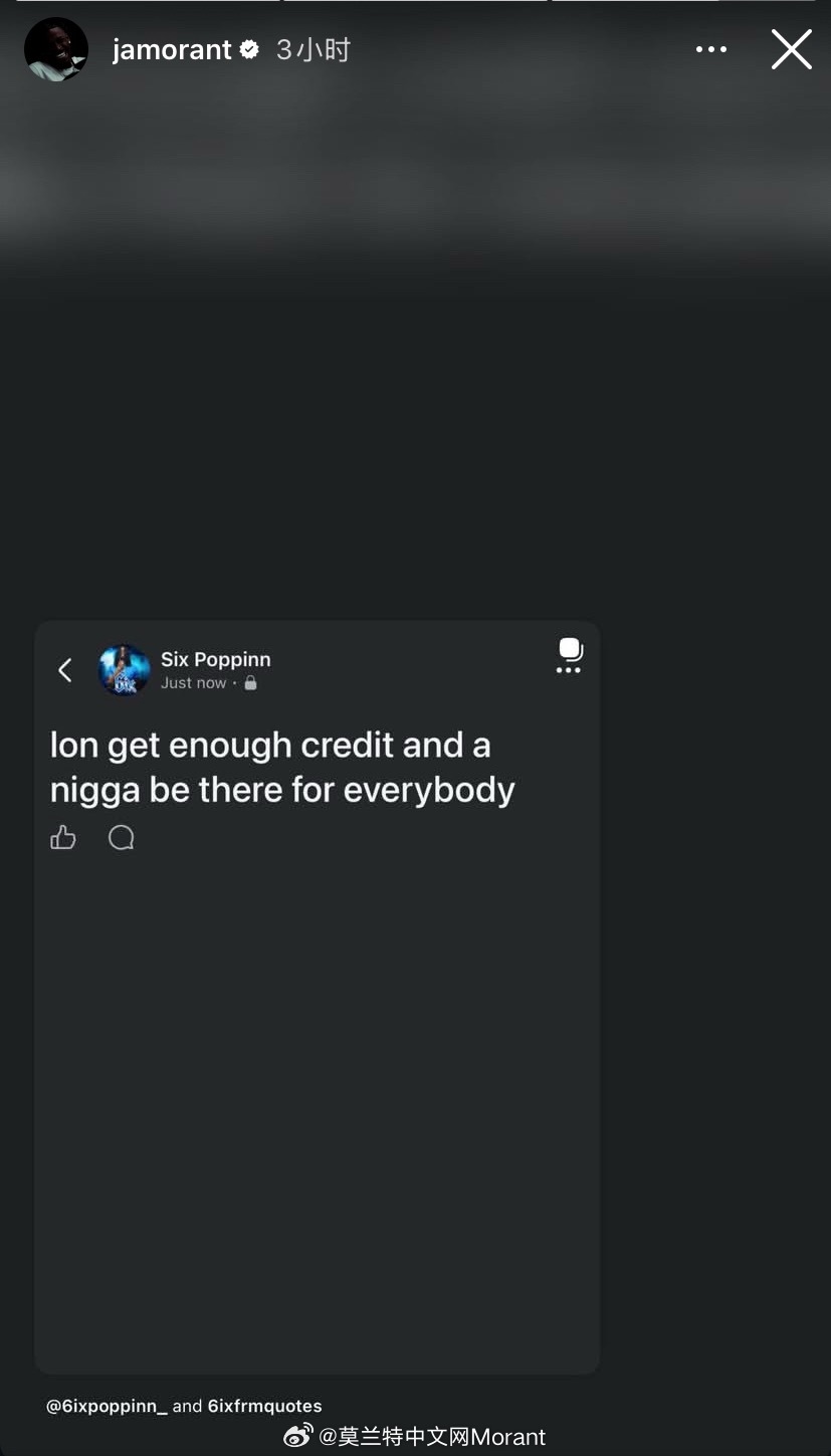 莫兰特最近又在不断更新人生感悟…想你了,啥时候回归球场?🏀 莫兰特孟菲斯灰熊n